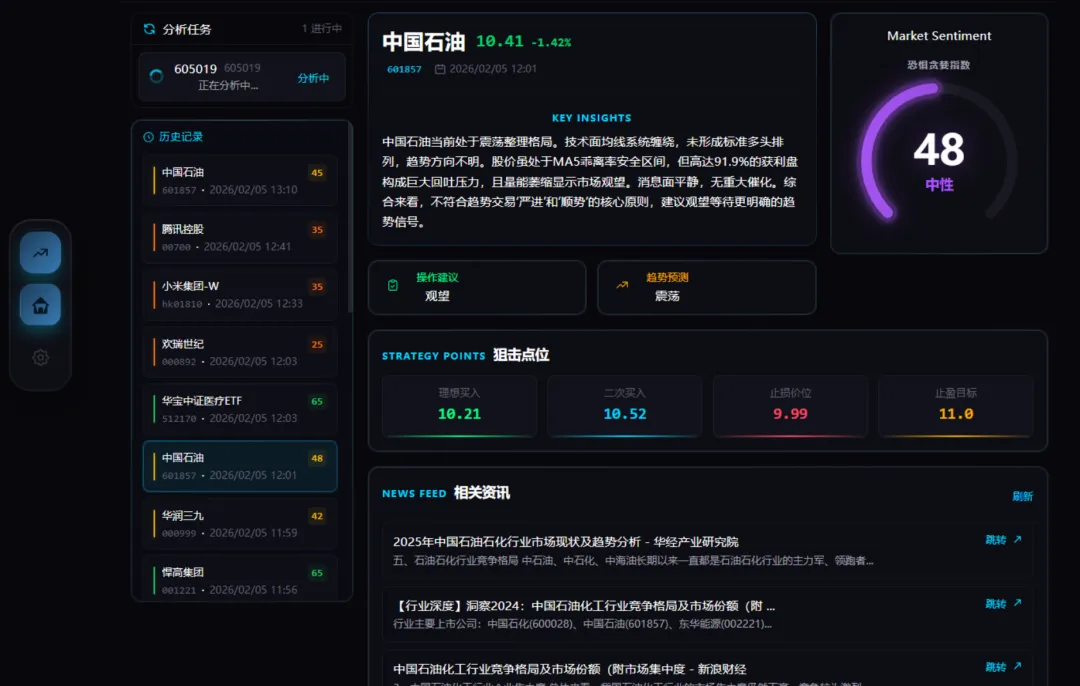 通过多维度分析(技术面(盘中实时 MA/多头排列)+ 筹码分布 + 舆情情报 + 实时行情)等给你指明操作方向!