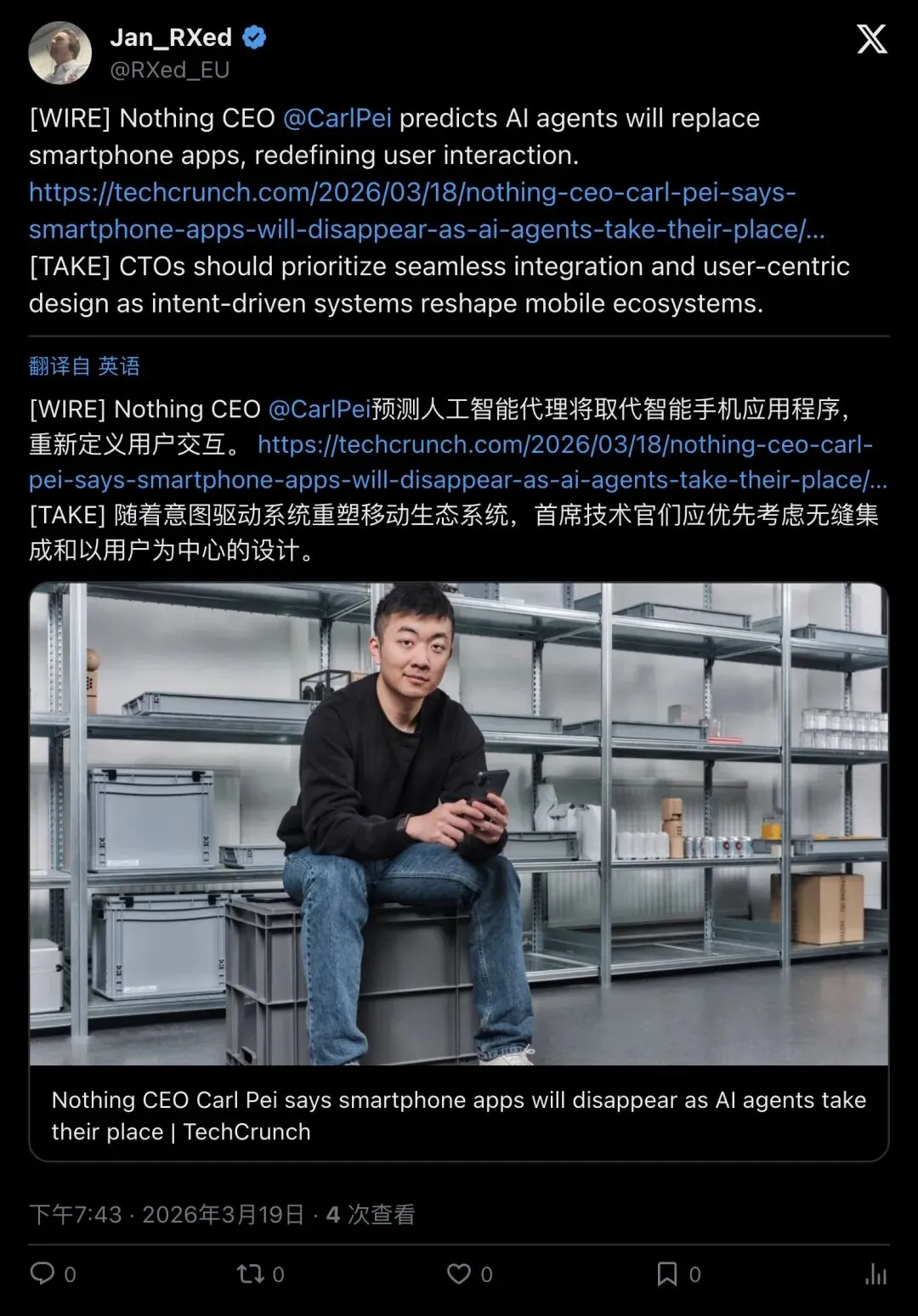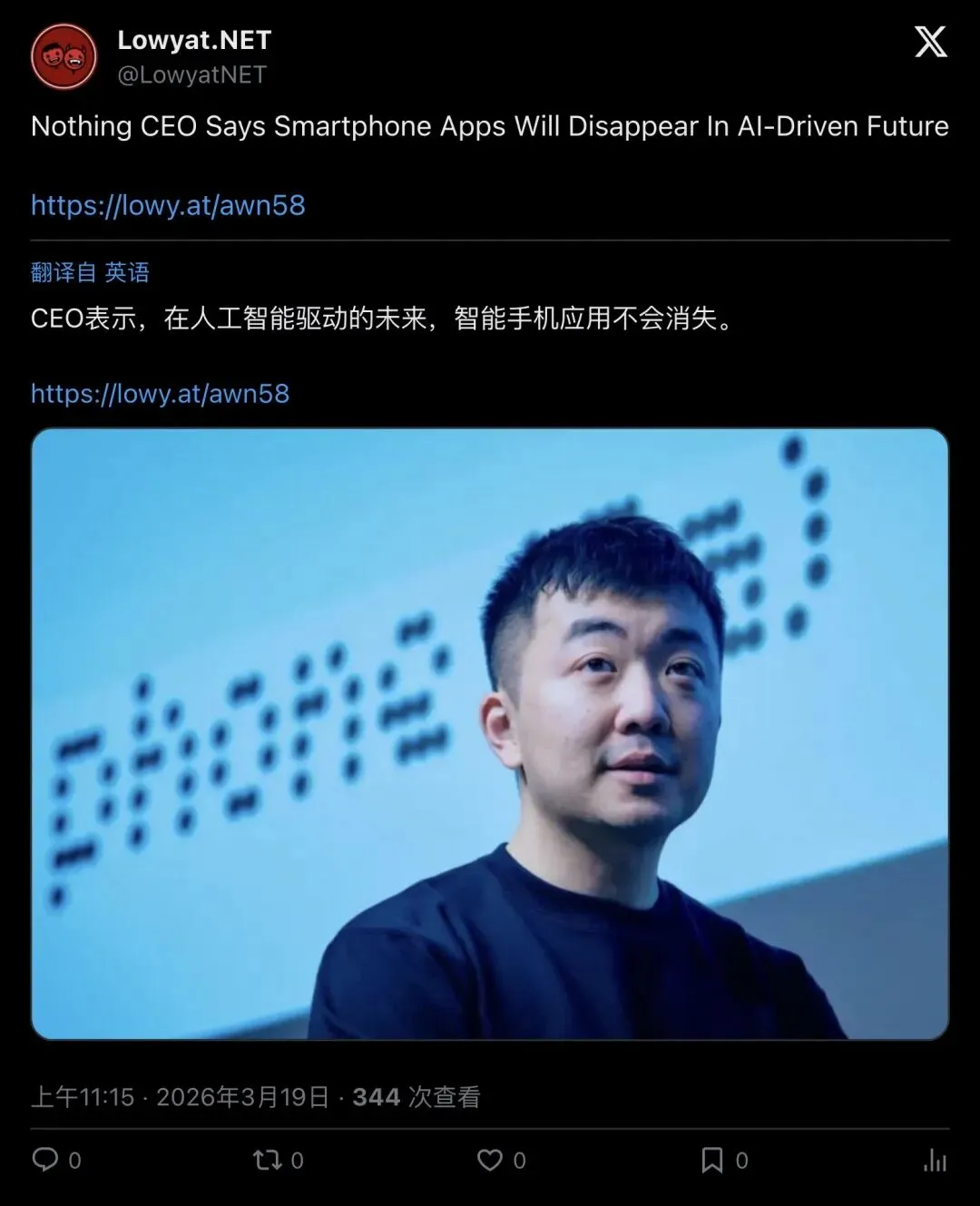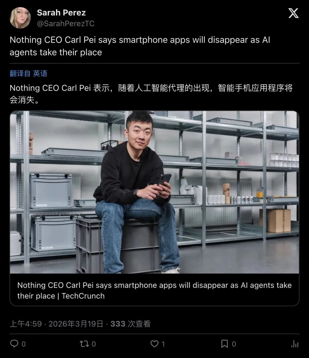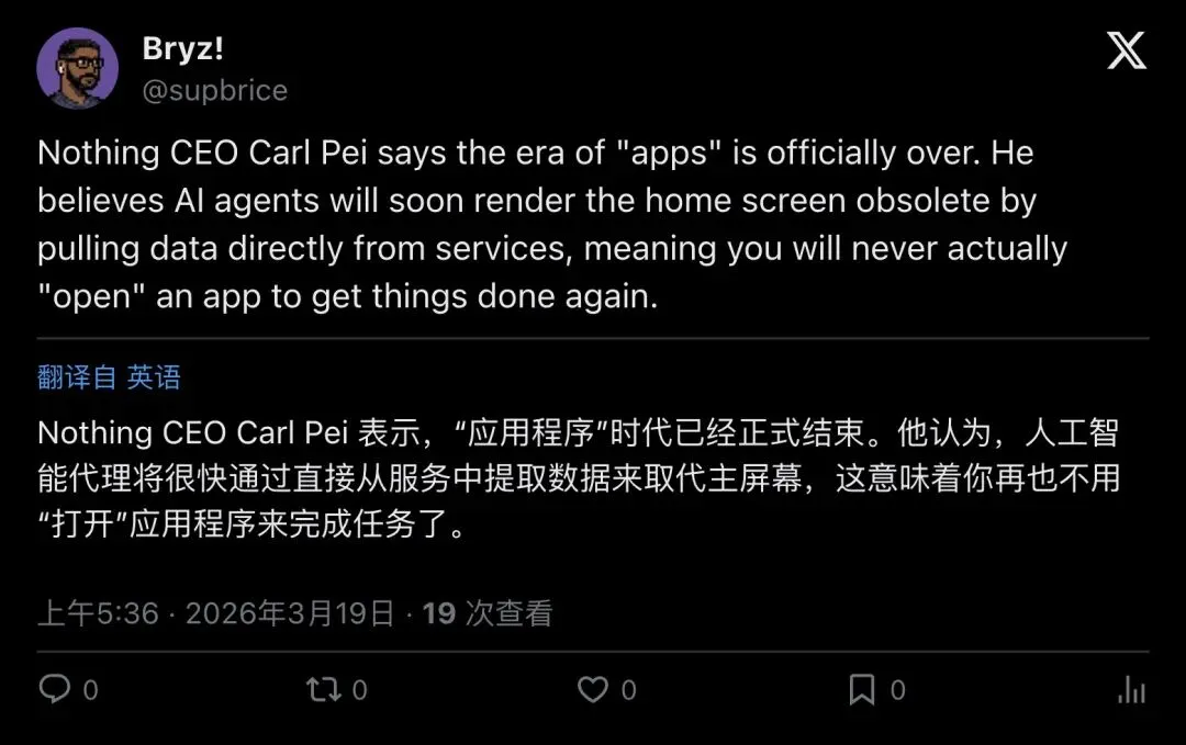 ▲ Bryz:Carl Pei 说”App 时代正式结束”