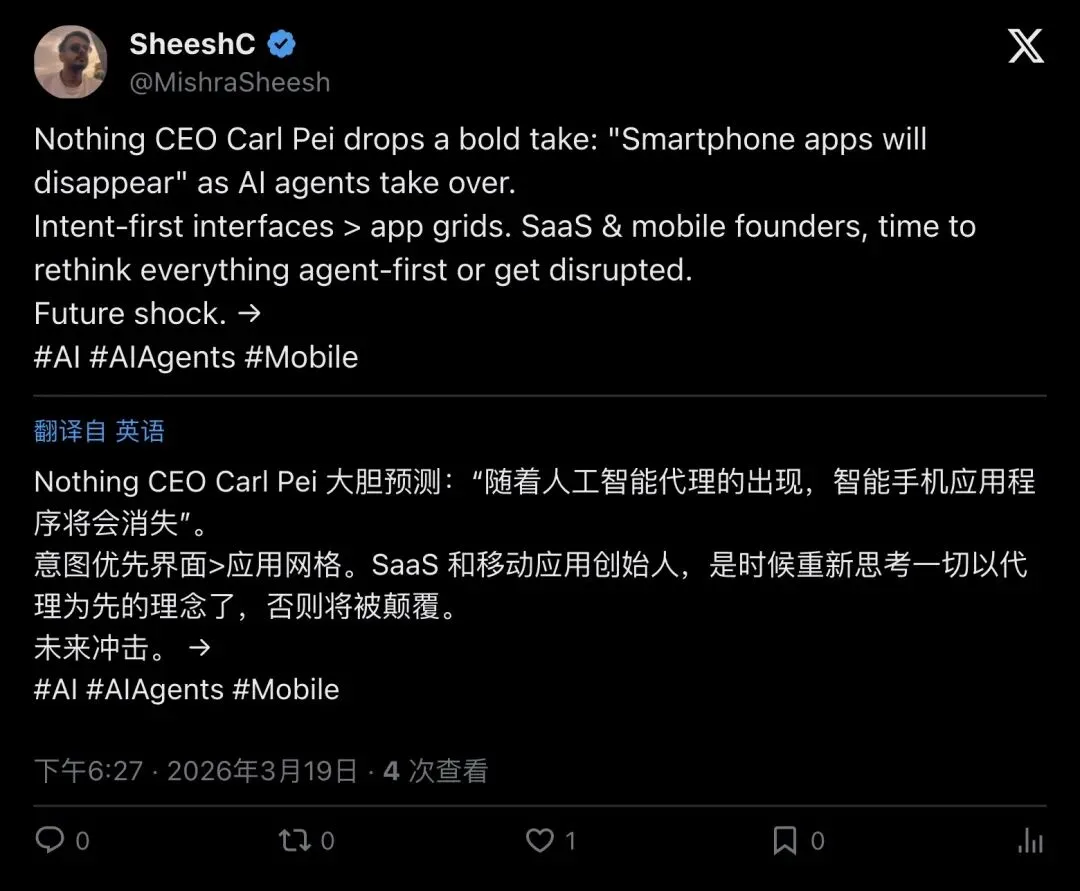 ▲ SheeshC:Carl Pei 抛出”App 会消失”的激进观点