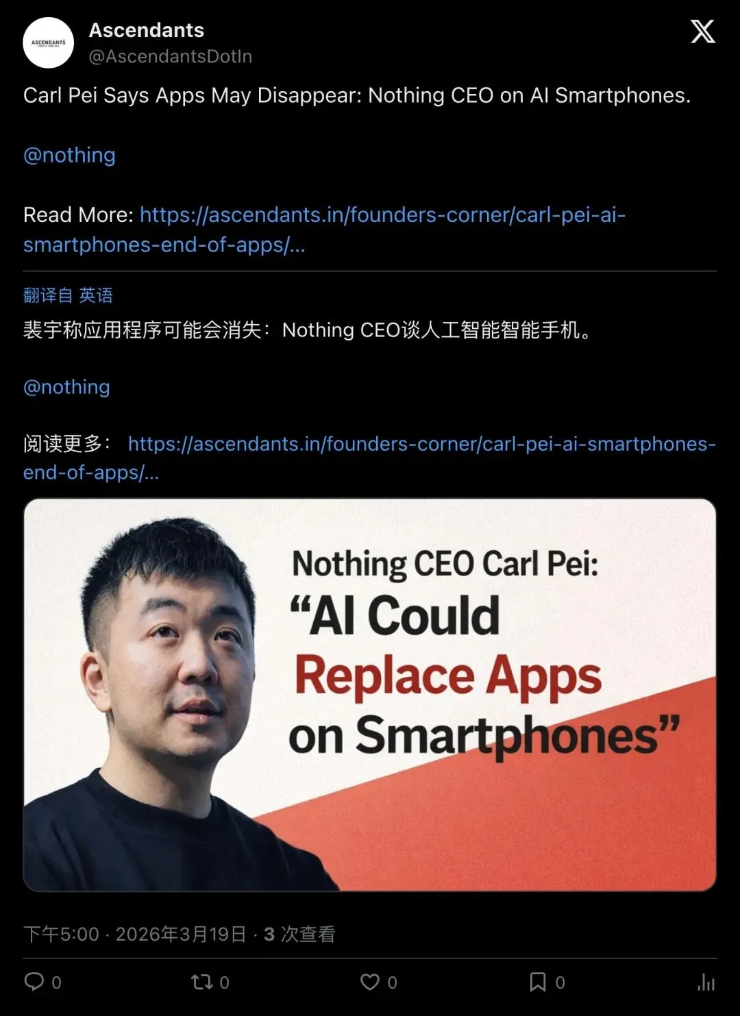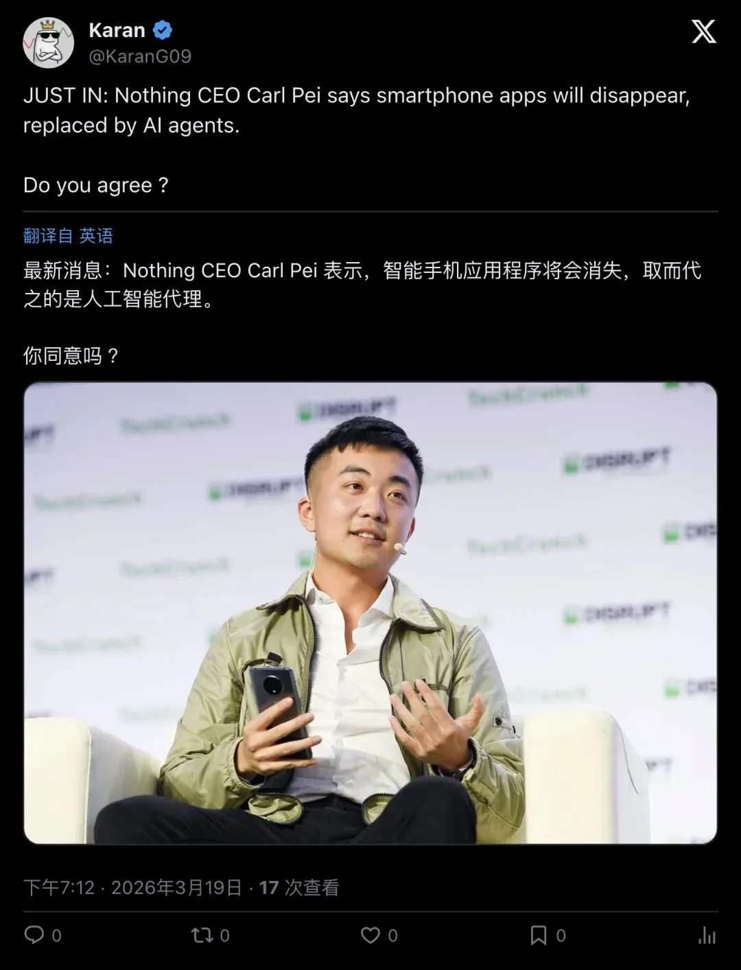 ▲ Karan:突发新闻,Carl Pei 的最新判断