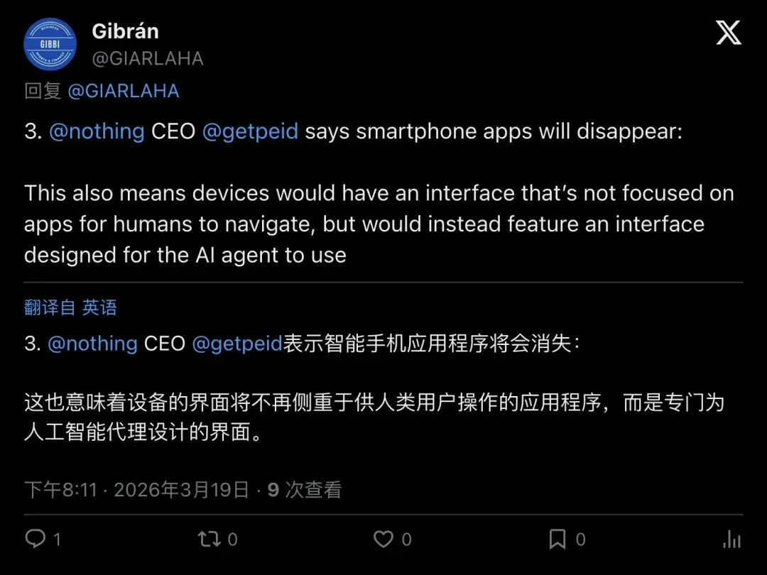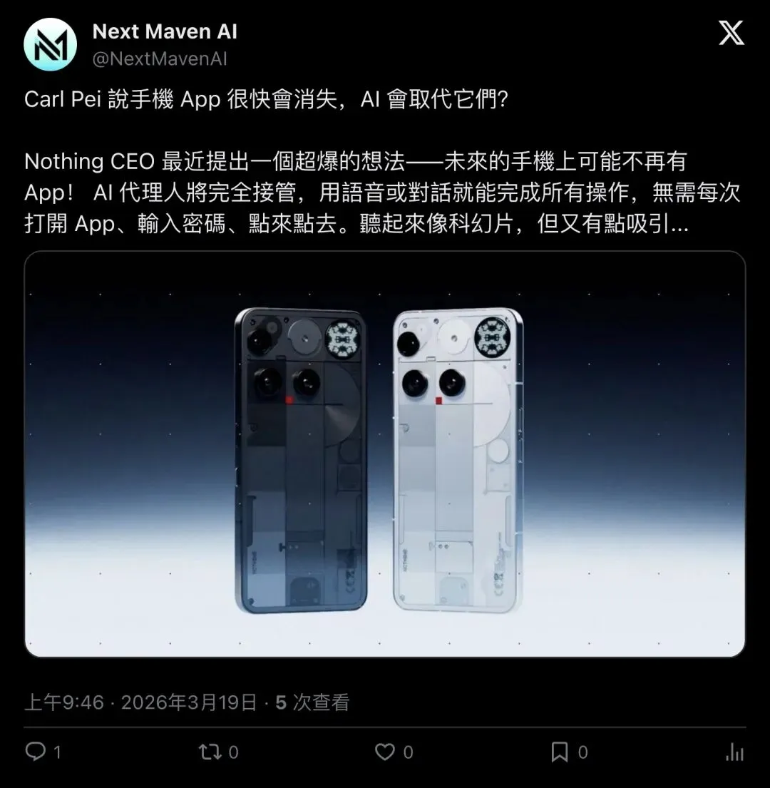 App 时代真要结束了?Nothing CEO 这句狠话,赌的是 AI agent 取代整个手机界面