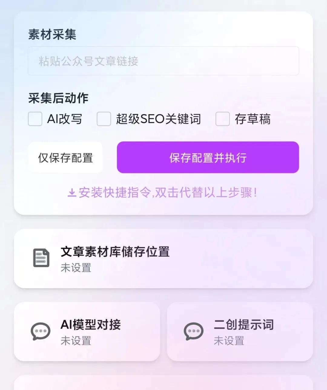 快捷指令 公众号、iOS快捷指令 文章保存、iPhone快捷指令 飞书、安卓APP 公众号保存、安卓 文章同步飞书、公众号素材管理工具、自媒体效率工具、如何用快捷指令保存公众号文章、安卓手机怎么备份公众号到飞书、公众号文章一键同步到飞书表格、iPhone快捷指令自动收集微信文章、自媒体人必备的内容管理工具、场景痛点词(用户描述问题,寻找解决方案)、文章素材丢失、公众号收藏整理、内容管理混乱、灵感收集工具、防文章被删、公众号备份、永久保存文章、收藏的公众号文章找不到了怎么办、公众号里的好文章怎么整理、如何建立自己的公众号素材库、有没有自动保存公众号文章的工具、微信文章太多太乱怎么管理、竞品替代/对比词(用户已知其他工具,寻找替代品)、替代Cubox保存公众号文章、类似印象笔记剪藏的工具、比Pocket好用的微信文章收藏工具、为知笔记不能同步公众号怎么办、有没有可以同步到飞书的文章收藏工具、功能延伸/效果词(用户追求更高级功能)、AI二创文章、自动改写公众号、SEO关键词优化、公众号草稿箱同步、内容自动化、如何用AI自动改写公众号文章、公众号文章怎么优化SEO关键词、怎么把文章自动保存到公众号草稿箱、提升内容创作效率的工具、自媒体自动化工作流搭建、飞书文档、飞书多维表格、飞书一键创建多维表格、AI公众号代运营、公众号文章写作教程、公众号文章流量主、公众号文章AI改写、公众号文章过AI