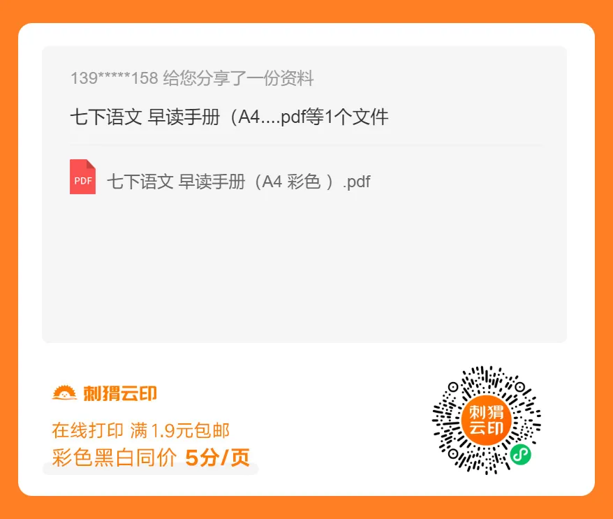 习题资料:七下语文早读手册(可下载打印)