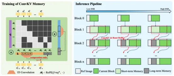 长视频生成最大的系统瓶颈之一在于 KV cache 会随时长持续增长。我们提出 ConvKV Memory,将历史 key value 压缩为固定长度记忆,在尽量保留长期时序信息的同时,把不断增长的缓存变成可控、可复用、可长期运行的记忆结构。