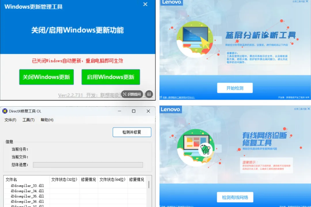 温馨提示:使用前建议备份重要数据,优先尝试对应故障工具,按照提示一键操作即可;工具适配全品牌Windows电脑,不限联想机型,老旧电脑、新电脑都能适配。
