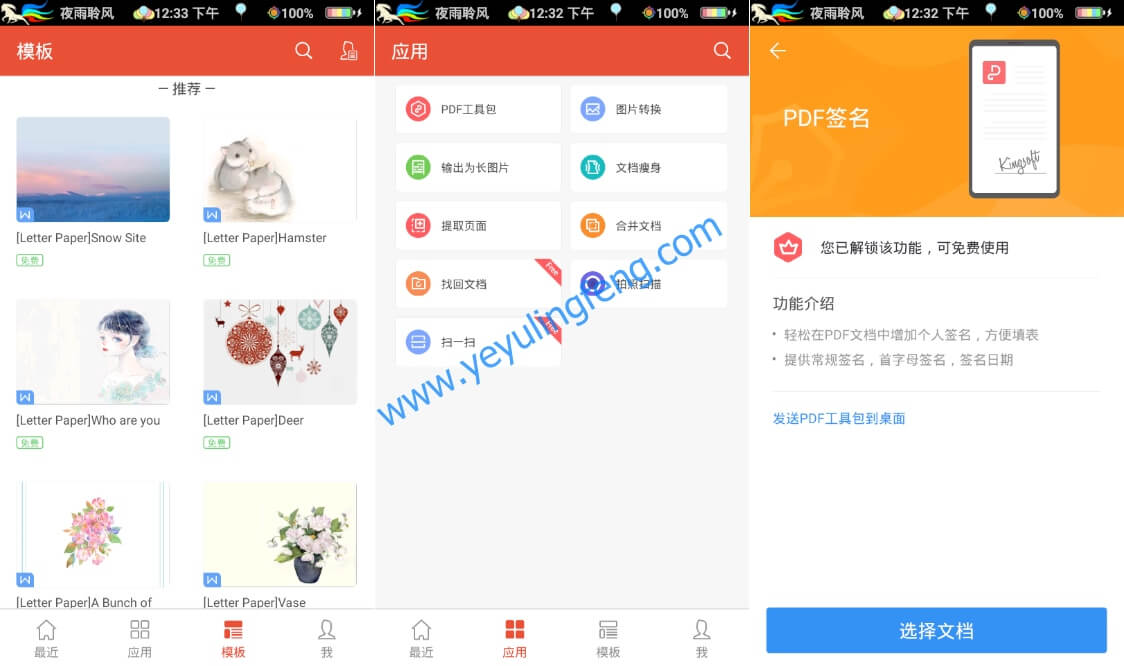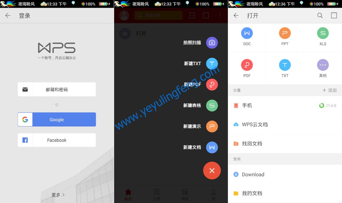 微软Office作为办公应用的业界龙头,PC端混的风声水起占据着大部分人的电脑,这里老夜也是非常推荐大家在电脑上安装Microsoft Office的,毕竟WPS虽然免费但是劫持用户主页这种案例还是屡屡发生。但是目前移动智能设备的发展迅速,手机化办公需求也日渐增长,虽说Microsoft Office也有手机版的发布但是由于上架了Google play商店,用户好不容易得到安装包还得需要Google服务框架的支持,文档同步使用的个人账户也困扰着一大波小白,在如此严重的水土不服情况之下WPS Office的手机端应运而生,无论是操作还是使用方式完全满足国人的需求,经过多年的技术沉淀功能也逐渐实用且丰富了起来,目前WPS Office还是移动办公的推荐首选应用,个人使用永久免费,体积小速度快;独有手机阅读模式,字体清晰翻页流畅;完美支持微软Office、PDF等多种文档格式