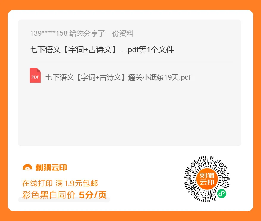 习题资料:七下语文古诗文通关小纸条(可下载打印)