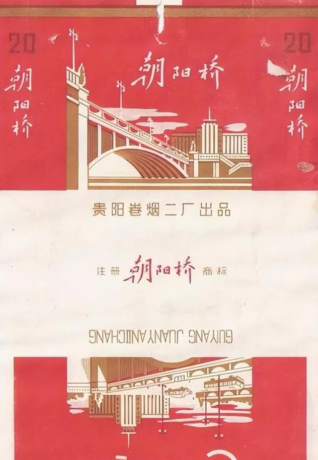 这张朝阳桥我第一眼就喜欢。红白两色,桥身一拱,旁边再配城市楼房,既有老味道,也有点现代气。你发现没有,过去很多烟盒虽然印刷条件有限,但构图一点不含糊。桥、水、建筑,几笔一放,城市就出来了。