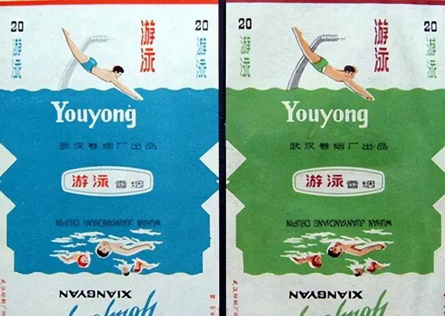 游泳烟的图案太经典了。一个跳水动作,底下是水波,颜色一蓝一绿,特别醒目。现在回头看,这设计居然还有点洋气。关键是它让人一下想到以前夏天的生活:河边、水库、澡堂子、竹床、蒲扇。老东西就是这样,看着是烟盒,勾出来的却是一整段季节记忆。