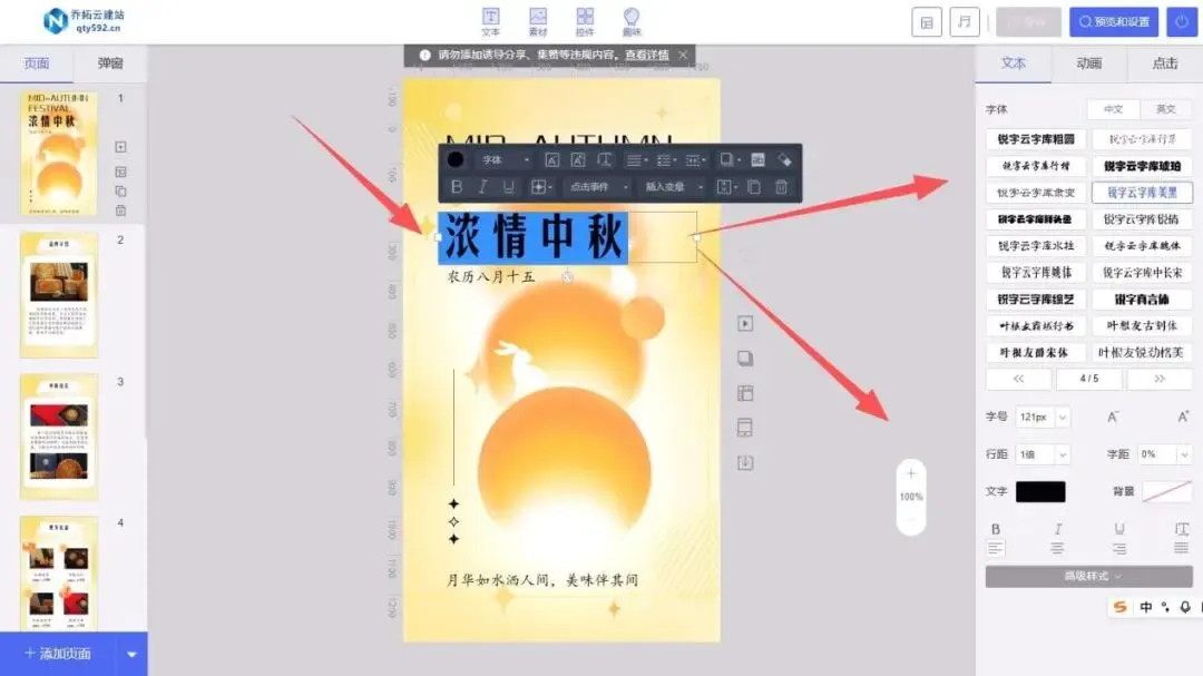 兔展 侧重高端商务场景,模板设计极具质感,色彩搭配与排版美学表现出色,适合打造品牌调性较强的H5内容;但字体库开放性不足,不支持品牌字体导入,部分模板修改权限有限,基础版无渐变功能,高阶功能解锁成本较高。