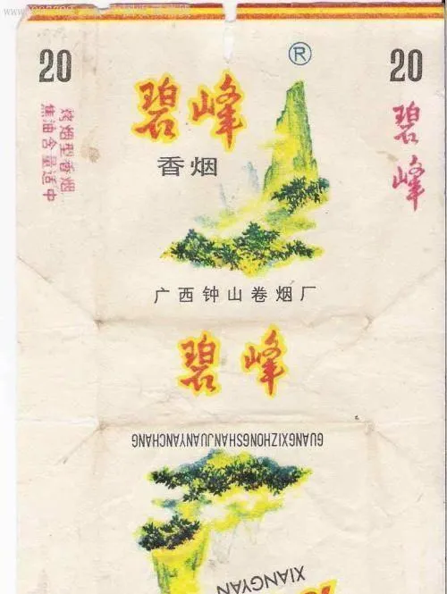 这张画着绿山头的叫碧峰,广西钟山烟厂做的,外包装素净点,烟味偏淡,不容易让人头重,村口打牌的大叔手里常年攥着一盒,抽完还能拱手递一支,师傅间的交情反正就靠这烟来维系。