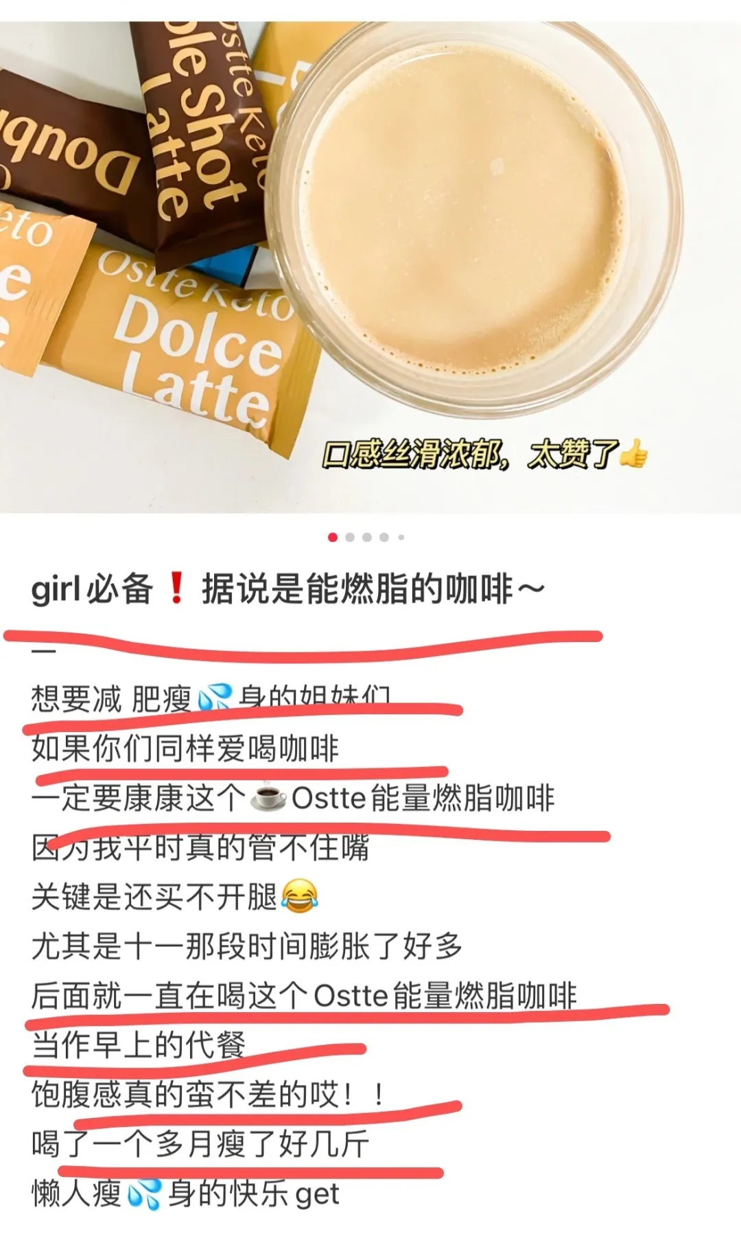 🔺Ostte(蓝氏代)能量燃脂咖啡,也叫“防弹咖啡” 先说味道,虽然叫燃脂咖啡☕️ 但是喝起来比普通速溶咖啡要醇滑好多😋 一点也没有速溶的渣渣!! 浓郁顺滑,口感也很细腻的 燃脂的秘密在于它里面的优质脂肪👌 咖啡里含有美国纯正MCT油和澳大利亚草饲黄油 因为这两个都是中链脂肪酸 所以在增强饱腹、控制食欲的同时 还不会在体内堆积 而是直接转化成能量被身体消耗掉!