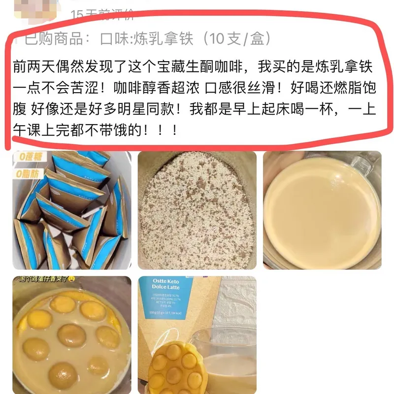 Ostte和市面生酮咖啡区别: ✅这款不是速溶咖啡,而是采用秘鲁咖啡豆烘培而成; ✅黄油也非普通黄油,而是来自澳大利亚的无盐草饲黄油; ✅MCT也不是用的椰子油,而是最优质的黄金配比C8:C10的中链脂肪酸MTC,来自于意大利。总之里面的生酮配比非常科学。 ✅最重要的是,里面的甜味剂来自于高品质的阻糖巴拉圭甜菊糖苷,完全不升血糖触发胰岛素,不用担心囤积脂肪,可以尽情享用!