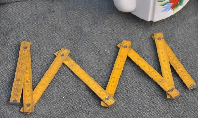 这个像小蛇一样能一节节折起来的家伙叫折尺,裁缝、木匠手里都得有一把,黄漆皮包铁芯,转轴地方摸久了都该亮滑了,一拉开,七八十厘米,量个裤腿,定块布头,都全靠它,有回奶奶量我姐姐的身板,奶奶手一撑,折尺拼成个大W,嘴里还念叨“别动啊,保持哈”,量完转手折回去,啪嗒啪嗒收成小把,揣兜就走人。