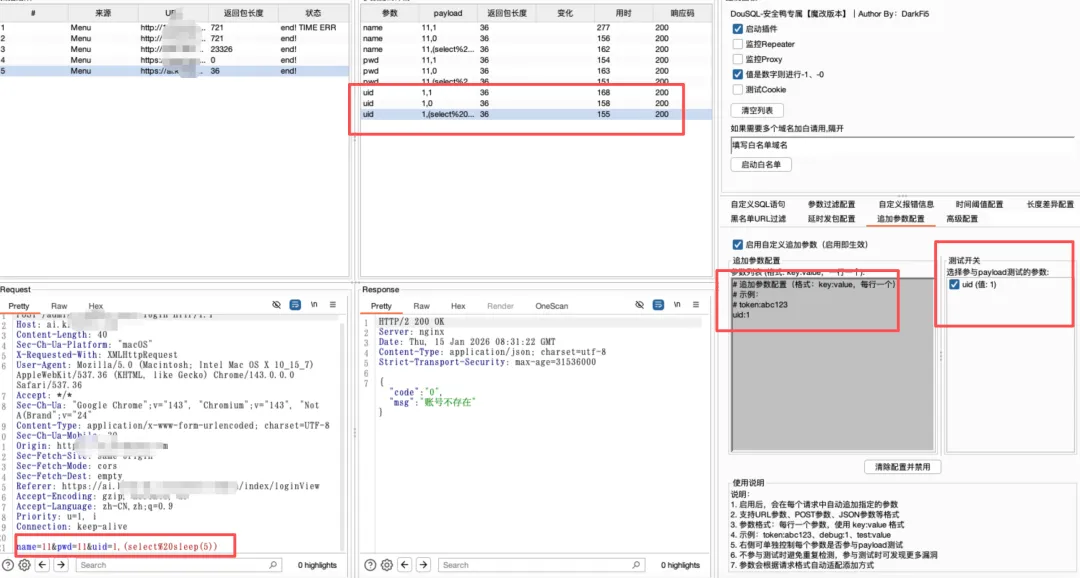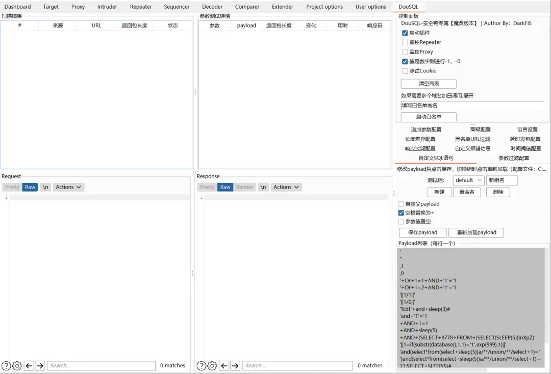 DouSql 是基于Xia Sql二次开发的高度自定义化SQL注入检测插件,专为安全研究人员和渗透测试工程师打造。