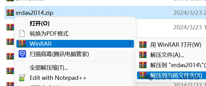 1、ERDAS的安装相对比较复杂一些,一定要有耐心。首先将erdas2014压缩包解压到任意位置。