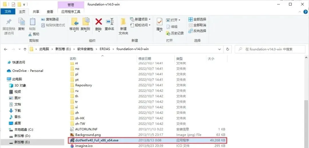 2、找到foundation-v14.0-win文件夹下dotNetFx40_Full_x86_x64.exe文件,如图所示,双击运行。