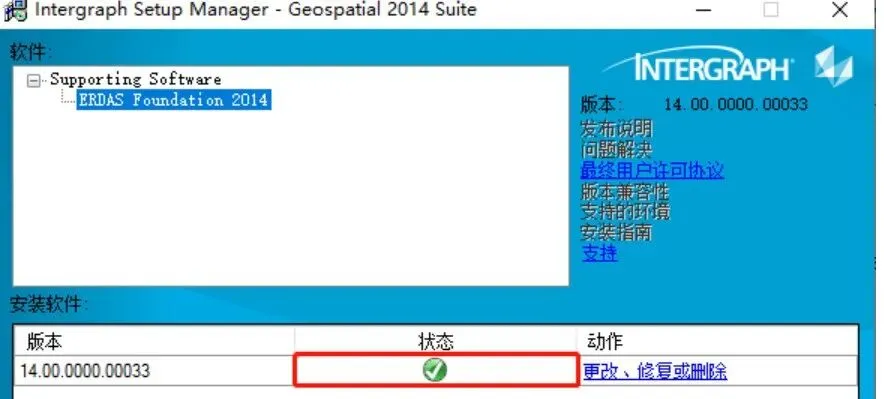11、安装完成后,点击Finish完成,Intergraph Setup Manager窗口中的状态显示绿色对勾表示安装完成,关闭此窗口即可。