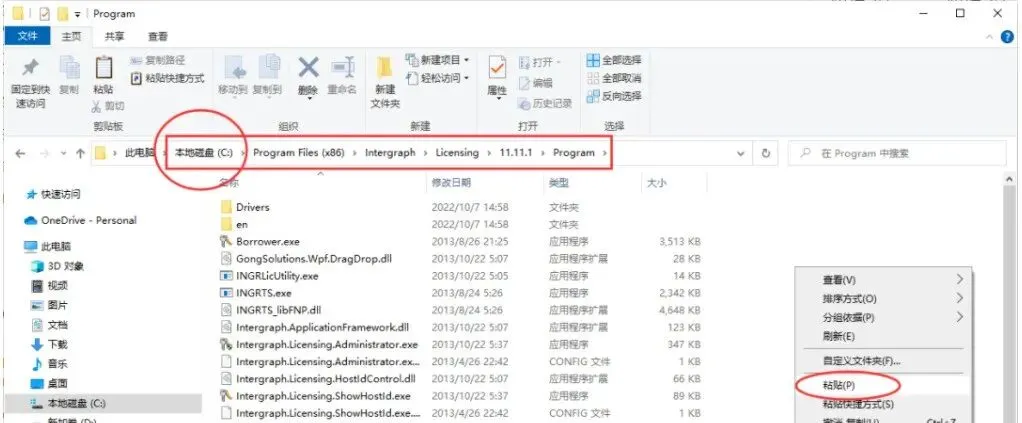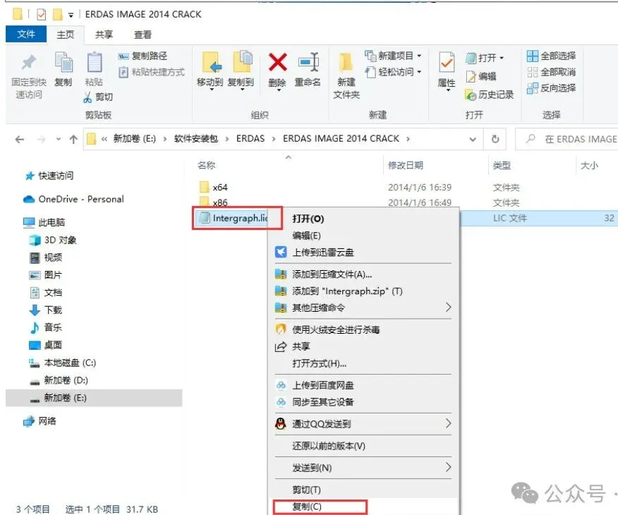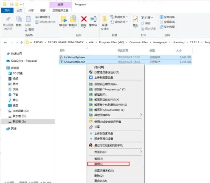 2、打开文件夹【ERDAS IMAGE 2014 CRACK】→【x64】→【Program Files (x86)】→【Common Files】→【Intergraph】→【Licensing】→【11.11.1】→【Program】,将里面的文件复制粘贴到目录【C:\Program Files (x86)\Intergraph\Licensing\11.11.1\Program】下,如下图所示: