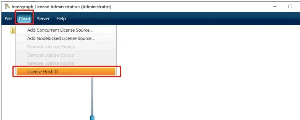 4、弹出界面后,点击Client下面的License Host ID,如下图所示: