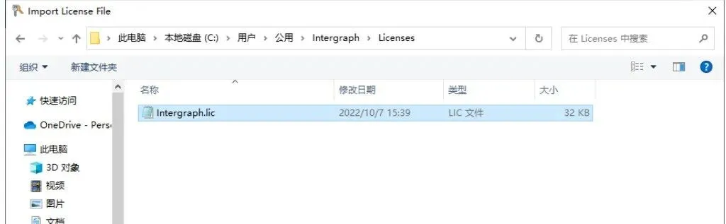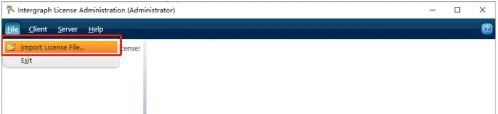 6、接下来点击Intergraph License Administration窗口的File→Import Liscense Files,选择刚才粘贴好的Intergraph.lic文件,关闭Intergraph License Administration界面。如下图所示: