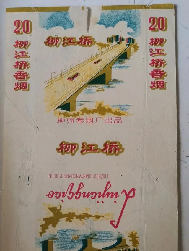 这张“柳江桥”挺耐看。桥身画得很长,车子像小点一样压在桥面上,旁边还印着“柳州卷烟厂出品”。说实话,这种设计今天看有点“老派”,可那个年代的人看烟盒,看的就是这种实在感:桥是真的桥,厂是真的厂,地方是真的地方。