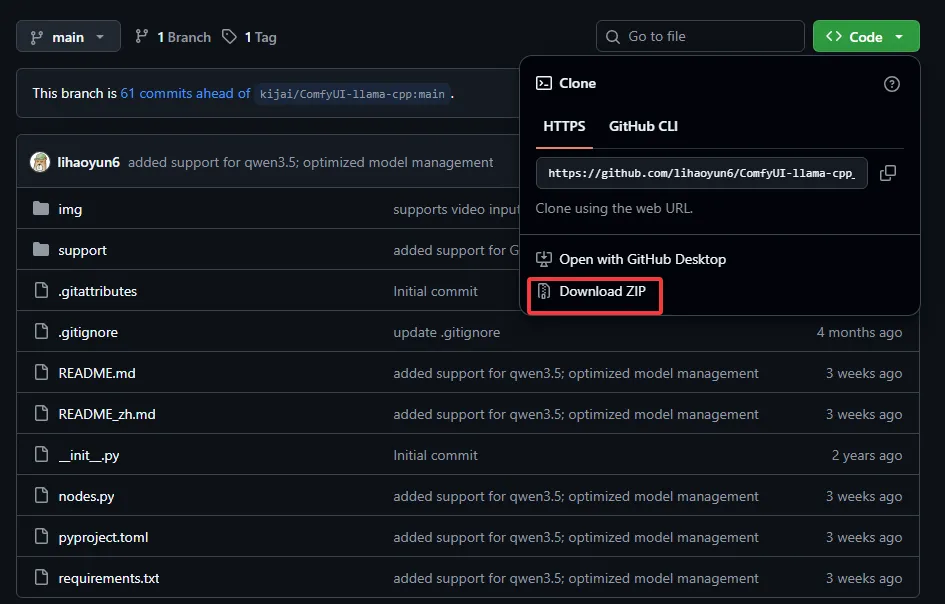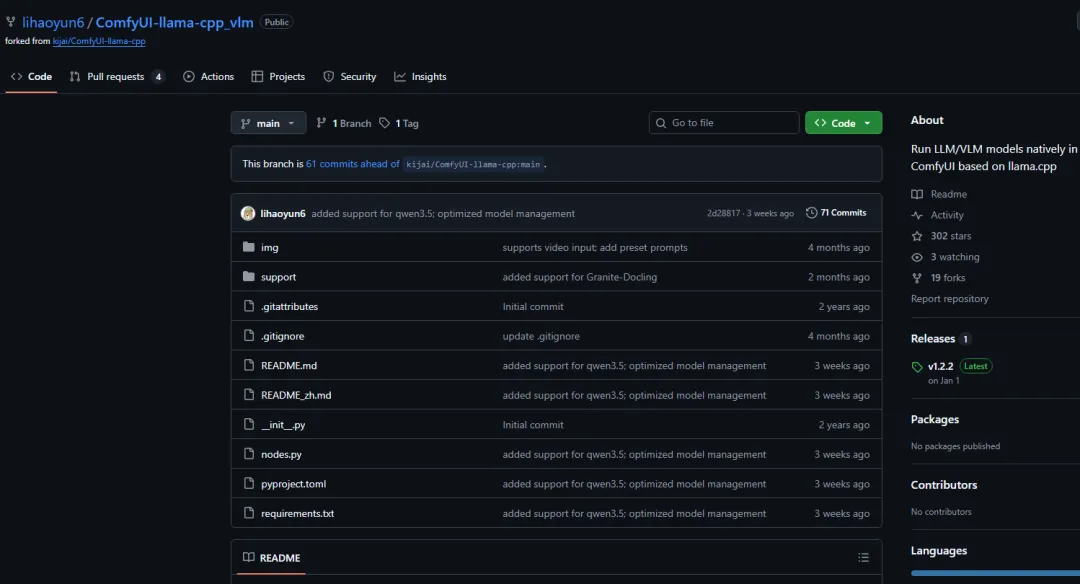 打开插件下载地址:https://github.com/lihaoyun6/ComfyUI-llama-cpp_vlm
