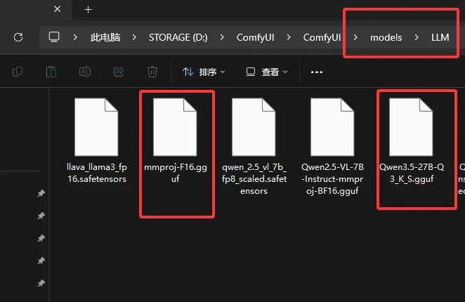 将下载好的大语言模型文件和视觉投影文件放到LLM文件夹: