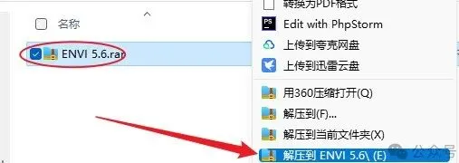 1.鼠标右击下载的【ENVI 5.6】压缩包,选择解压到【ENVI 5.6】。