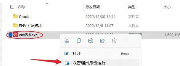 3.右键以管理员身份运行【envi5.6.exe】安装程序。