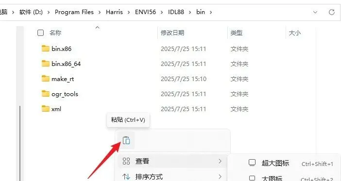 Files\Harris\ENVI56\IDL88\bin(第5步设置的路径),在空白处右键粘贴。