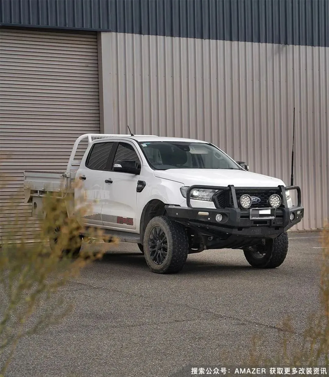 如果你弄了一辆皮卡当作工具车,其实杠、油箱和减震器弹簧估计就足够了。今天的案例就是澳洲最基本款的福特Ranger皮卡改装案例,减配车型,改装方案也比较务实,经济版前杠、辅助灯、天线、减震器弹簧之类的,后部箱体好像也改了一下,大部分矿区的LC79也是差不多的造型。