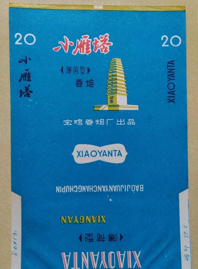尤其是古瓷那个蓝白配色,真有股老审美的劲儿,不花哨,但很稳。小雁塔那张蓝盒也有意思,塔身就立在中间,简简单单,却特别像以前地方烟厂的路数:牌子和地域绑得很紧。你一看名字,就知道这烟不是随便起的。