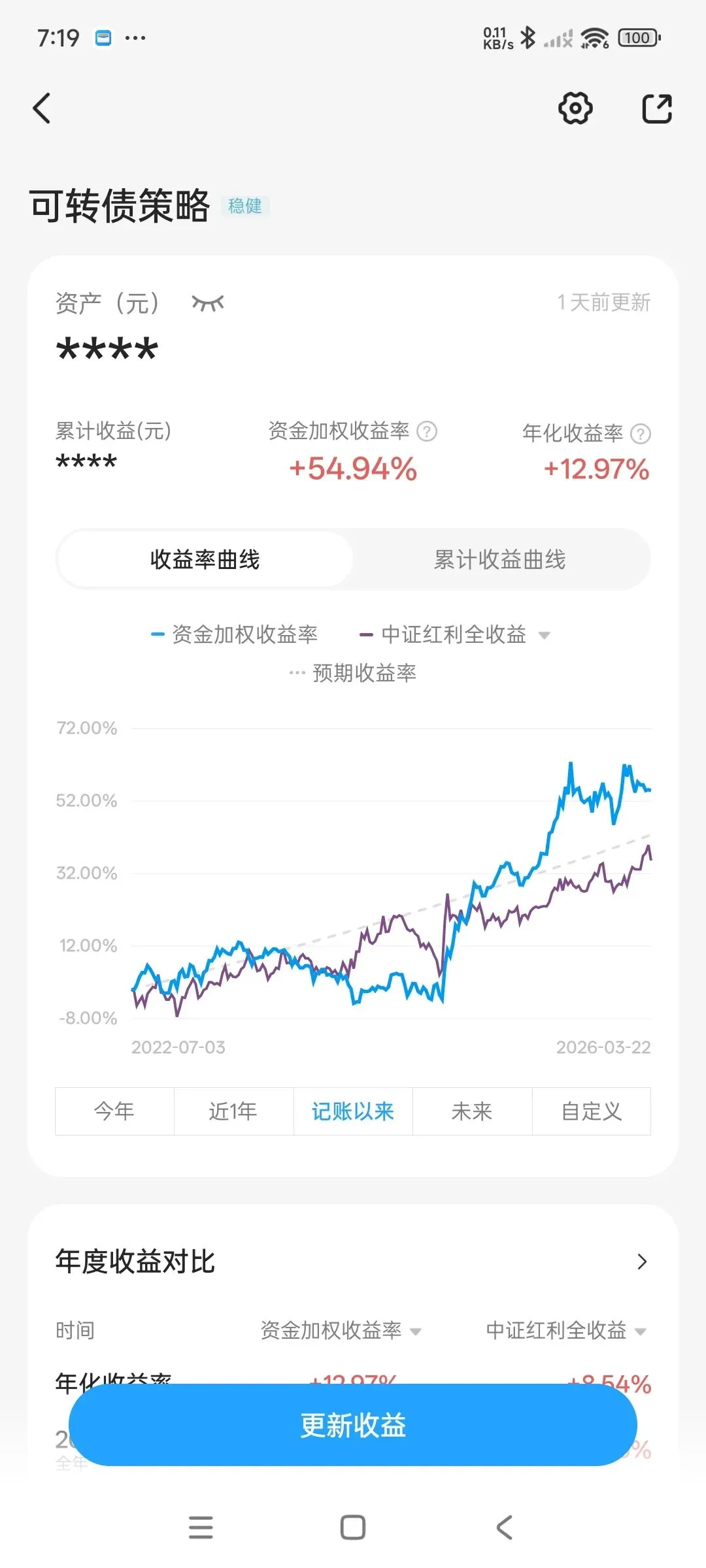 我常用的是投资记账模块,使用很简单,迁移成本也很低。只要取个名字,填入初始资金额,后面只需每周末更新当前资金额,有转入&转出再记录一下,它就能帮你统计收益情况,并绘制收益曲线,非常直观。