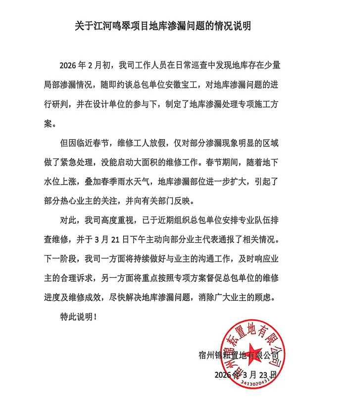 宿州锦耘置地有限公司相关负责人高度重视,第一时间与大泽之声进行沟通交流,并传来情况说明。