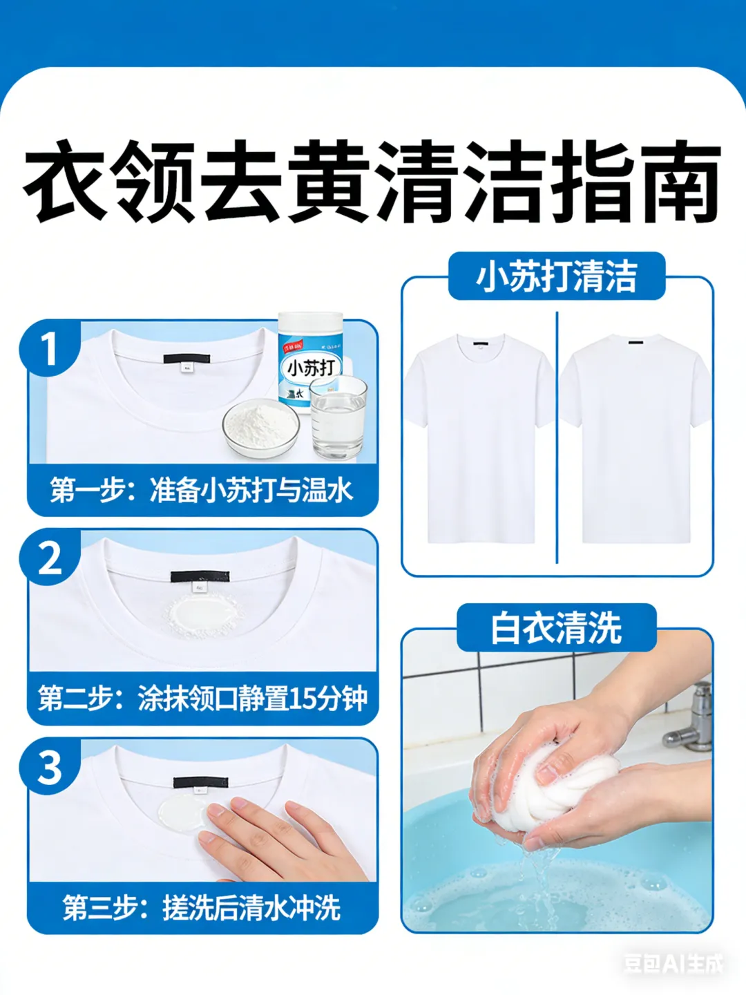 我一般会用牙膏加一点点小苏打,加点水搅一搅,涂在发黄的地方,轻轻搓一会儿,再正常洗衣服,会干净很多,白衣也不容易显旧。