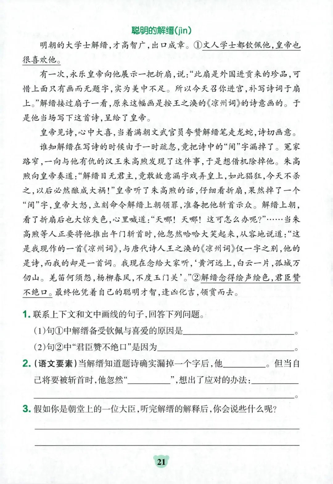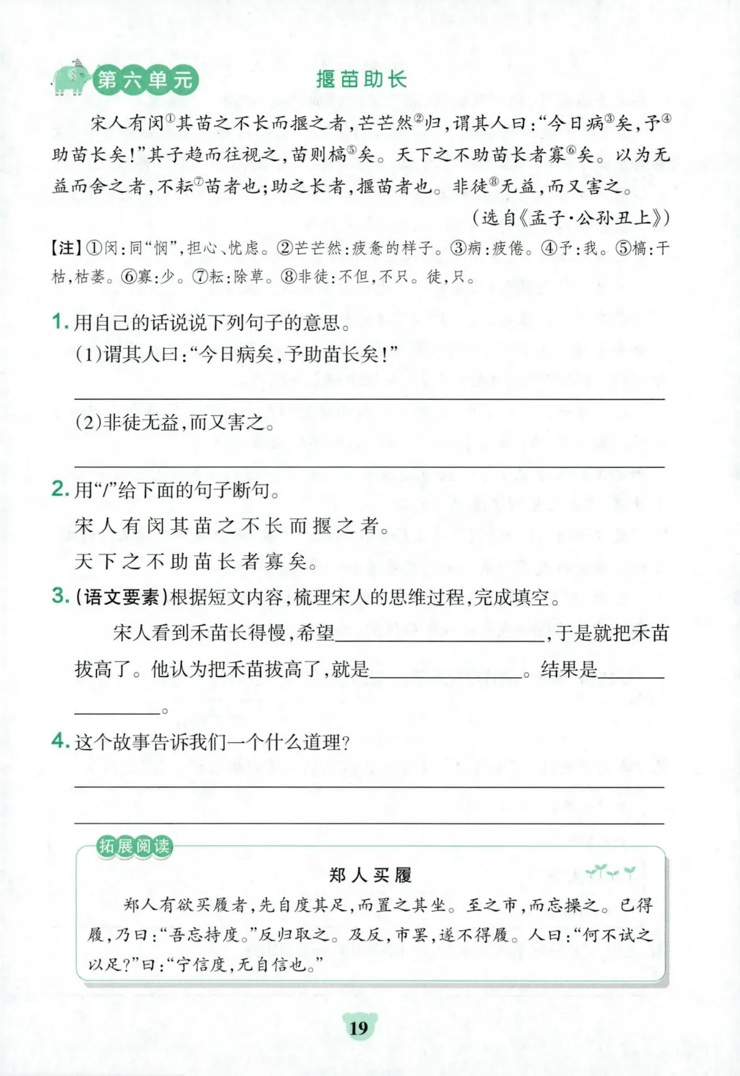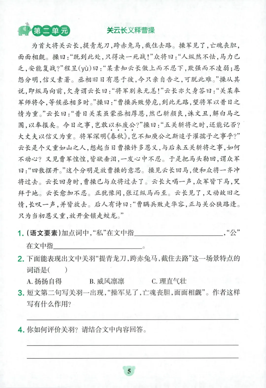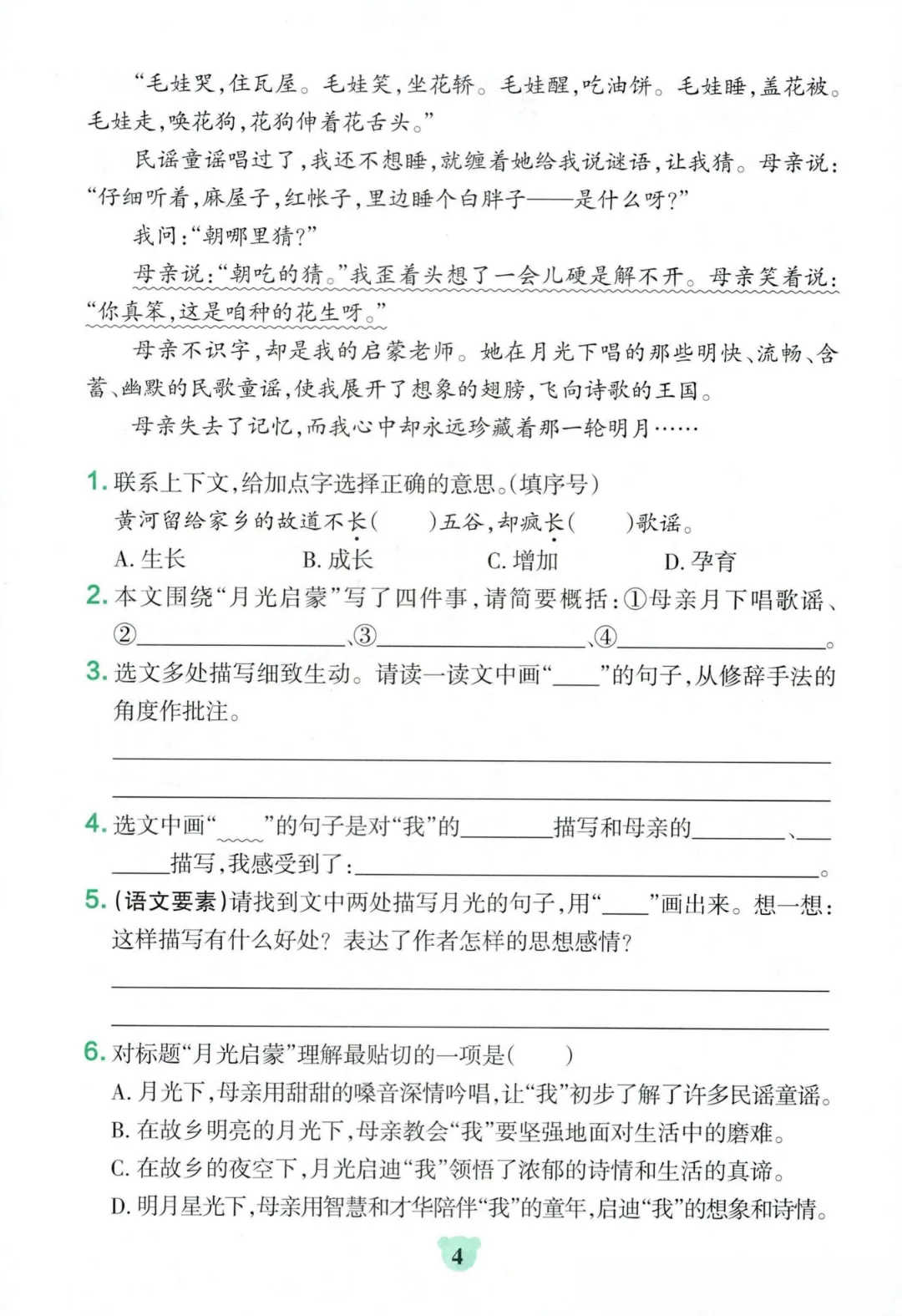 今天给大家分享的是:五年级下册语文【部编版】【同步阅读练习】带答案丨完整高清电子版可打印