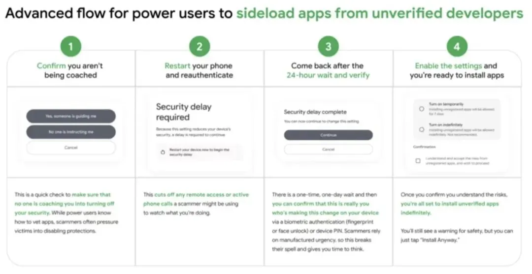 谷歌说得挺直白:就是为了打击诈骗,提升系统安全。现在网络诈骗(比如“杀猪盘”)太猖獗了,经常诱导用户下恶意APK,偷数据、骗钱。谷歌觉得,把侧载流程卡严了,是从源头上拦下这些风险。还有消息说,谷歌打算在2027年彻底关掉安卓的侧载功能,以后所有应用都得经过安全审核,统一从Google Play分发,风险能降一大截。