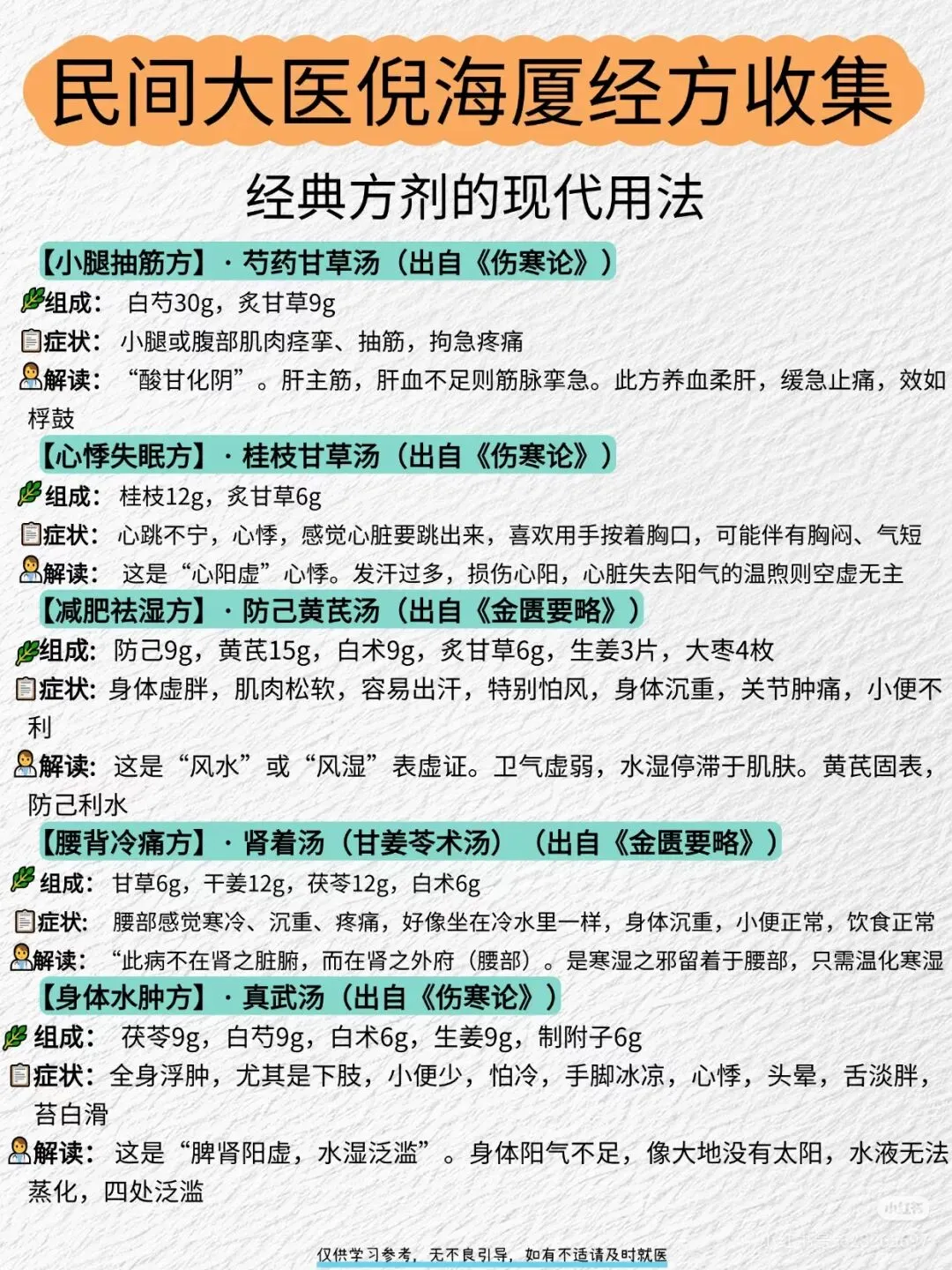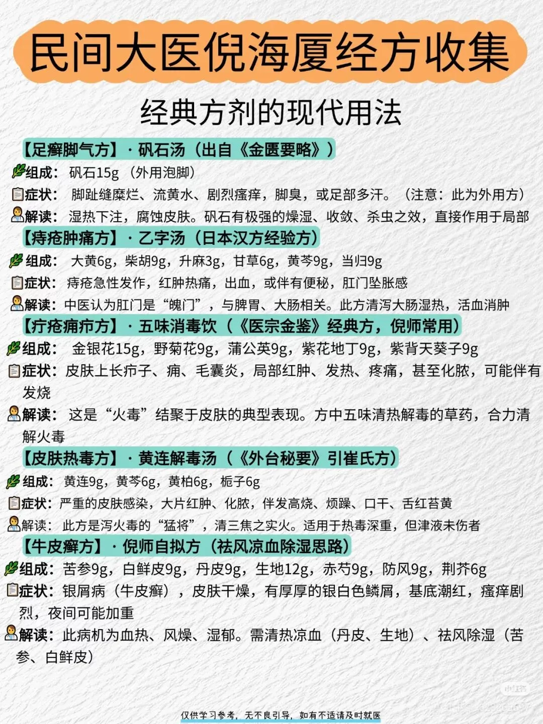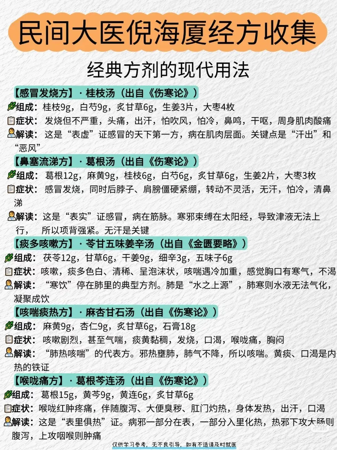 🔥 一份基于倪海厦老师学术思想的40首方剂参考合集,合集旨在梳理倪师如何灵活运用张仲景经方,并结合其个人临床经验,为解决皮肤、肠胃、妇科、感冒等常见问题提供的思路。
