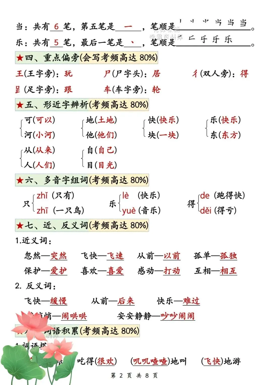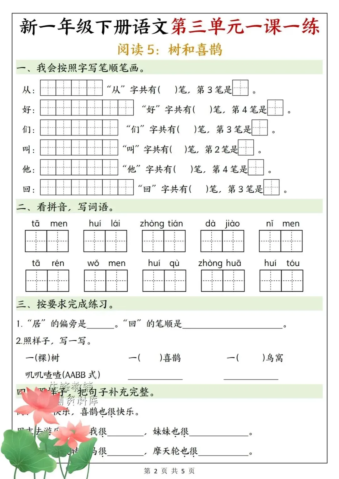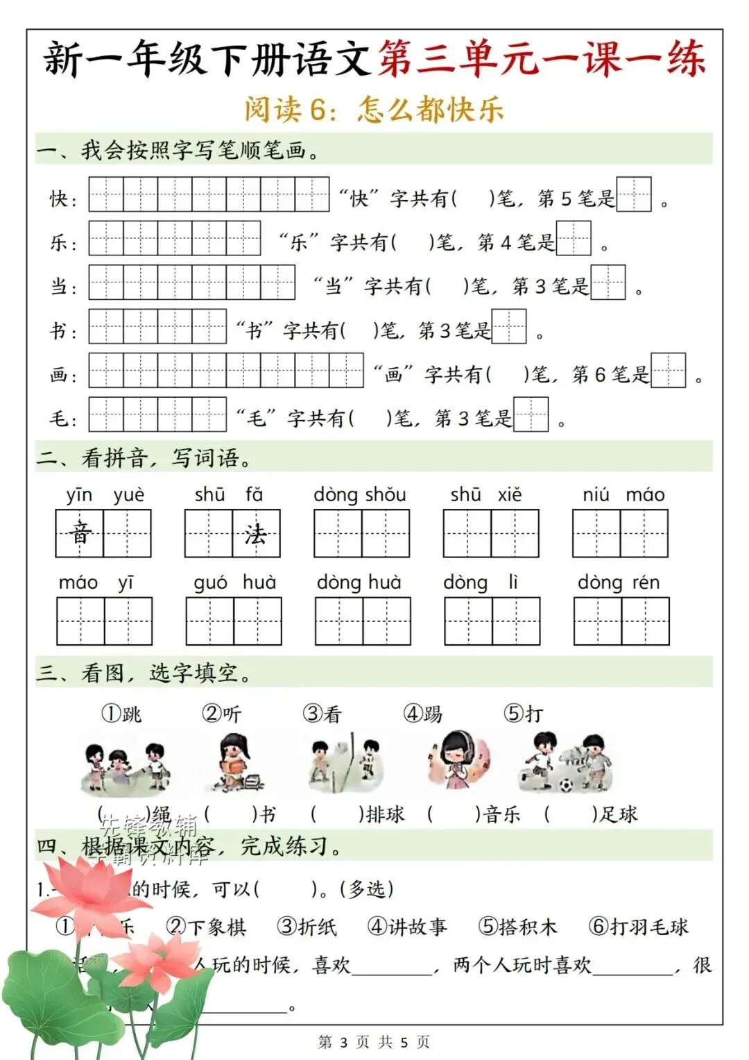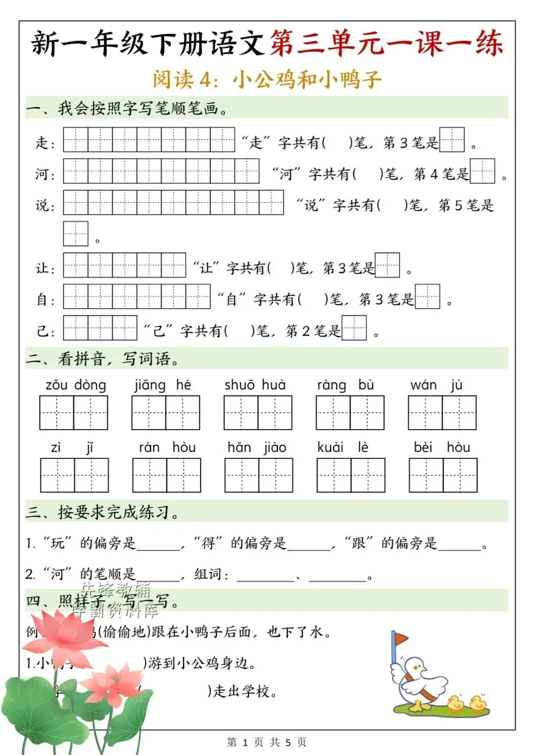2026年春《一年级下册语文第三单元考点+练习,一份搞定单元复习》电子版