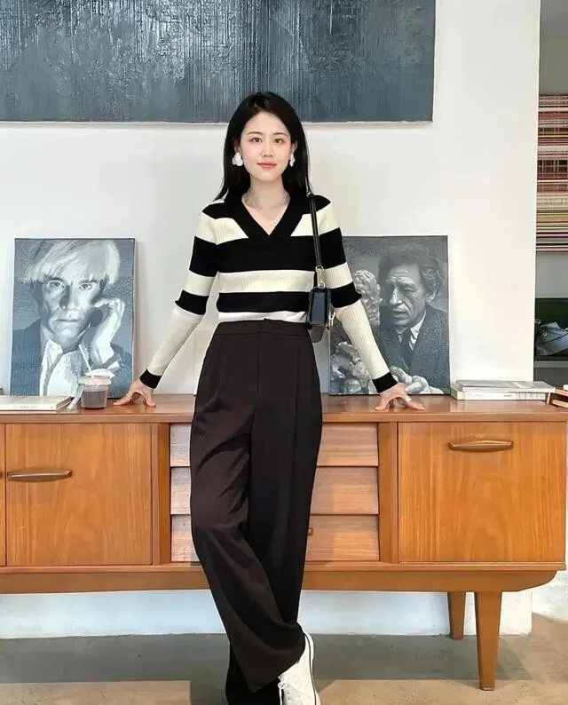 觉得纯色太素?条纹、波点、小动物纹的针织衫也可以冲 , 但记住 , 上衣花了下装就别再花了 , 纯色裤子压一压 , 整体才不会乱。