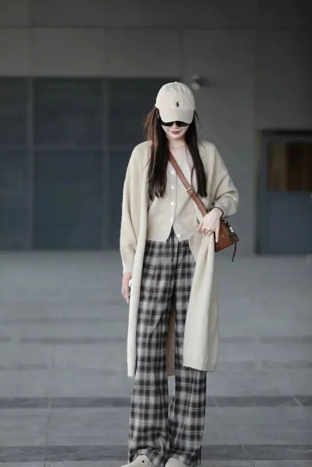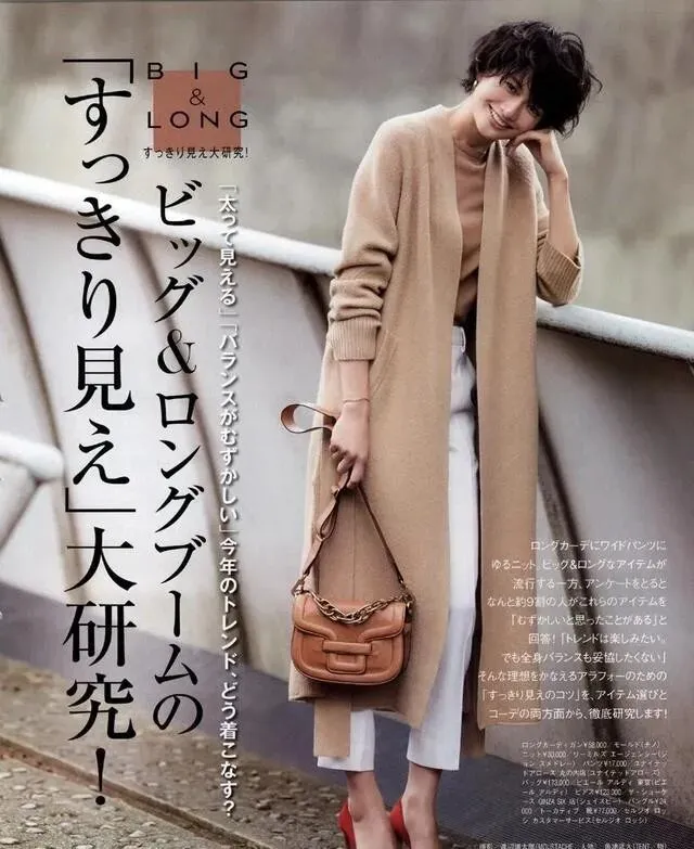 长款针织外套适合想显高的姐妹 , 线条往下走 , 视觉上腿就长了 , 内搭简单就行 , 打底衫加紧身裤 , 配短靴 , 走路带风那种。