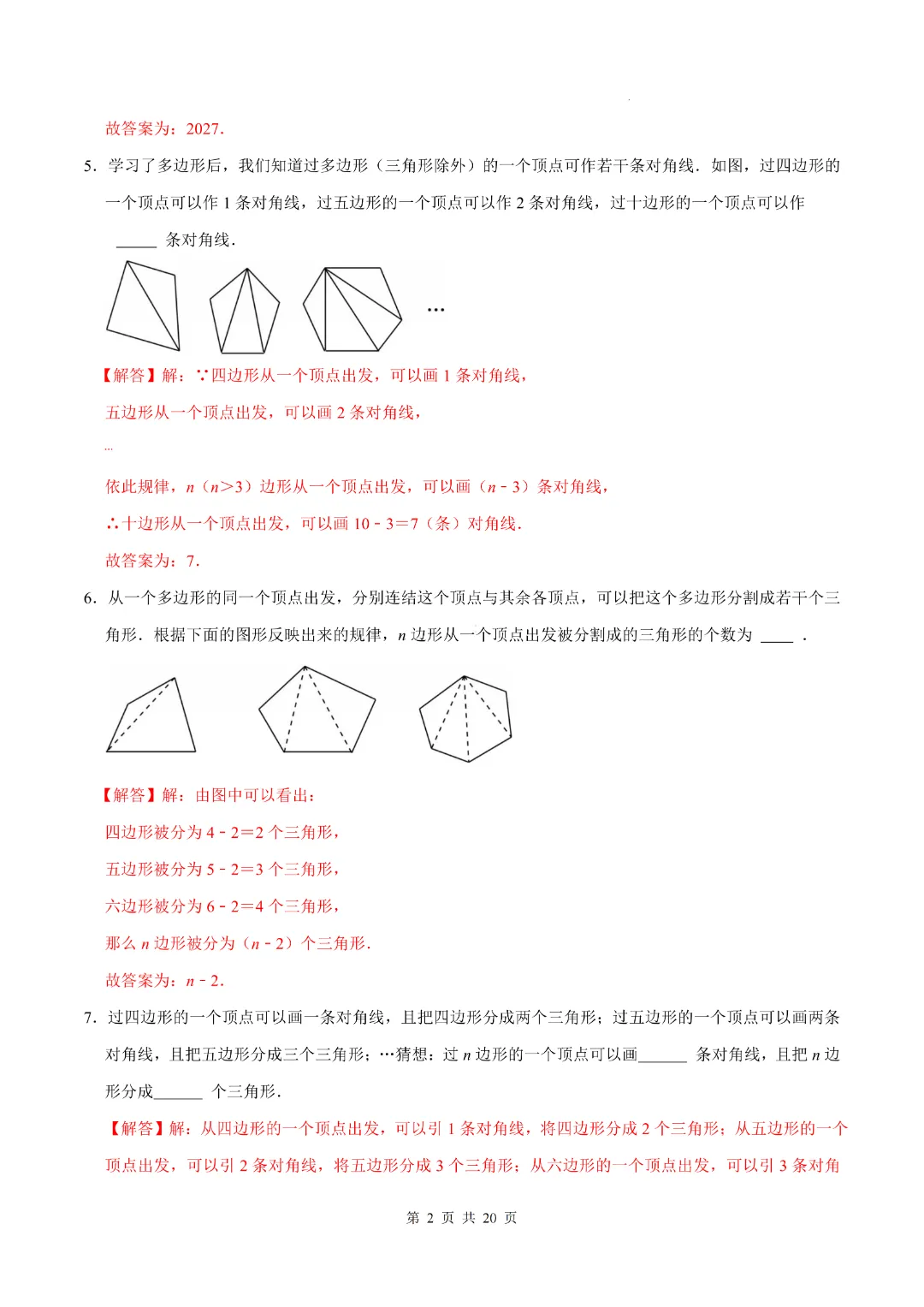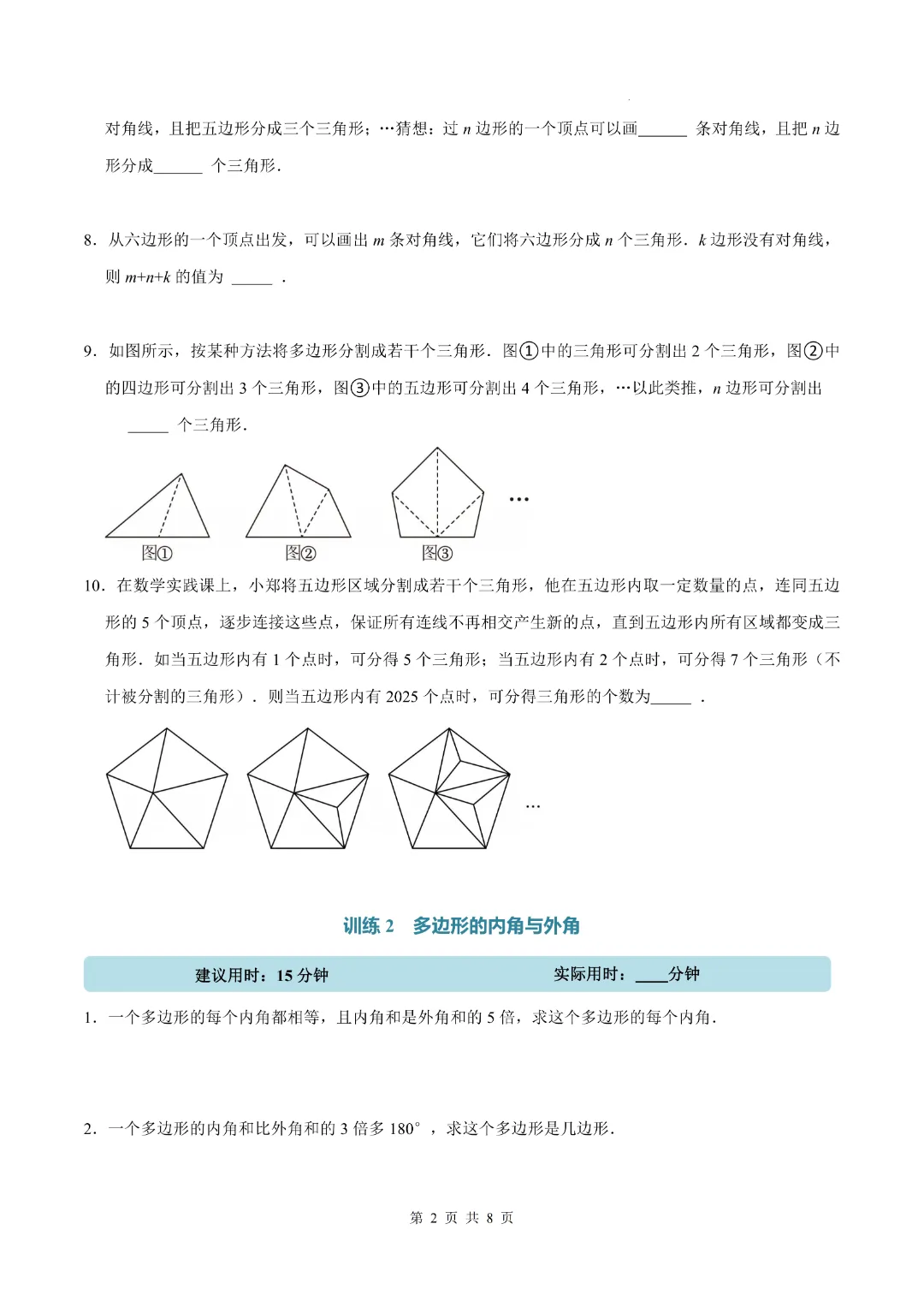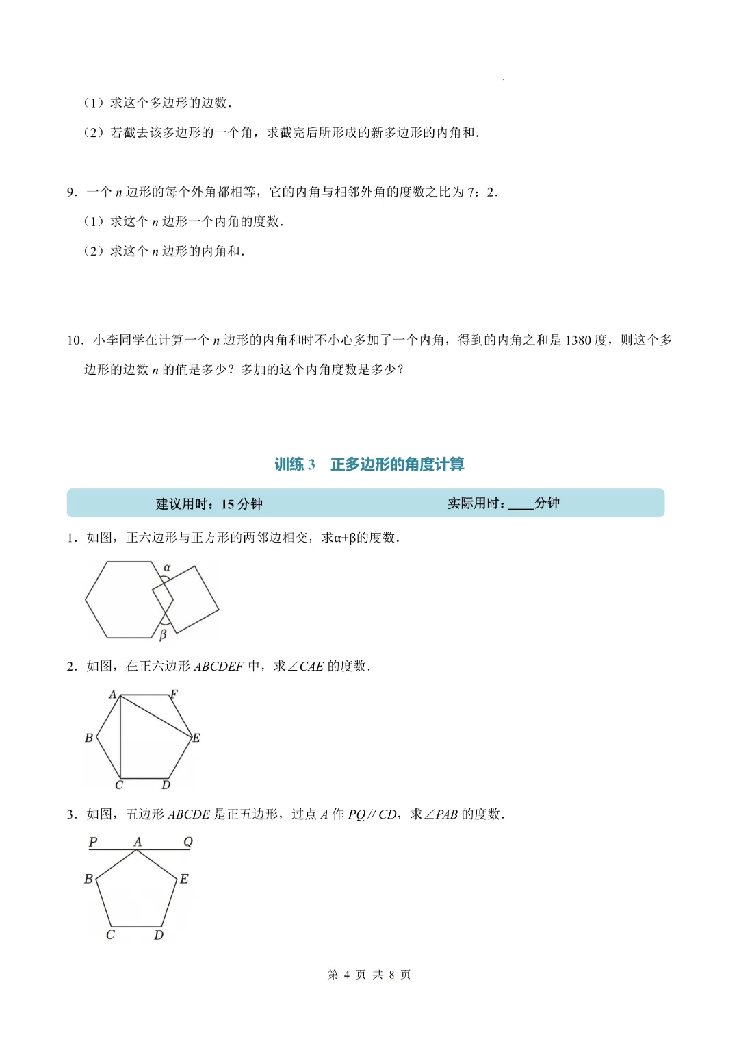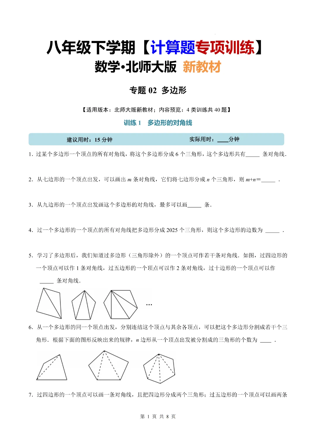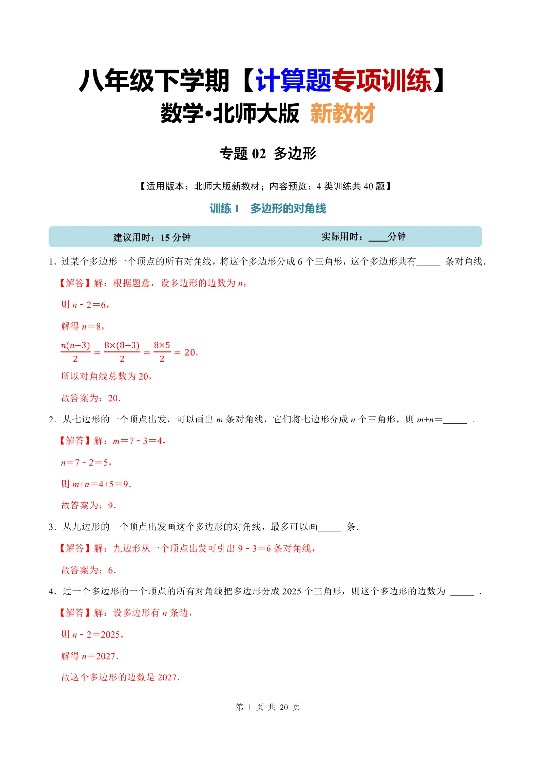 今天分享的是:《北师大版》2026年新八年级(下)数学【多边形·计算题专项训练】 附答案解析 完整电子版可打印