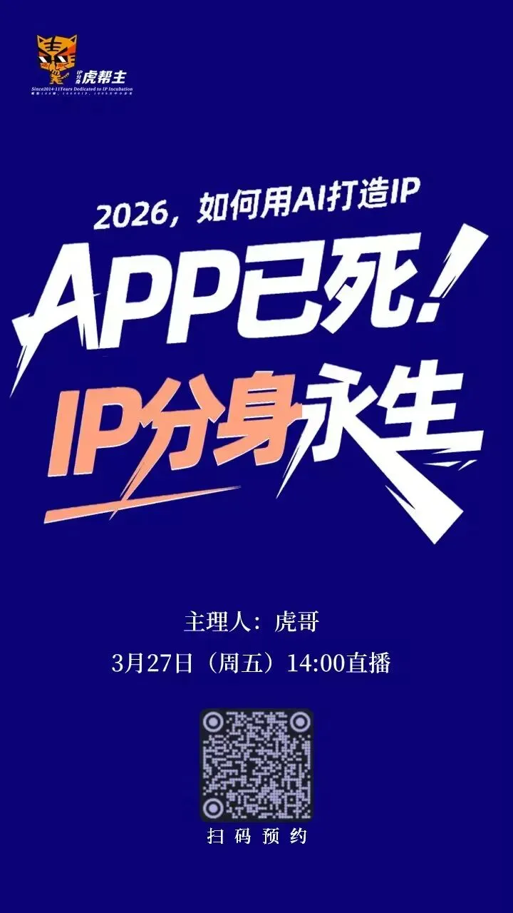 时间: 3月27日(周五)14:00主理人: 虎哥预约福利: 送IP分身体验案例
