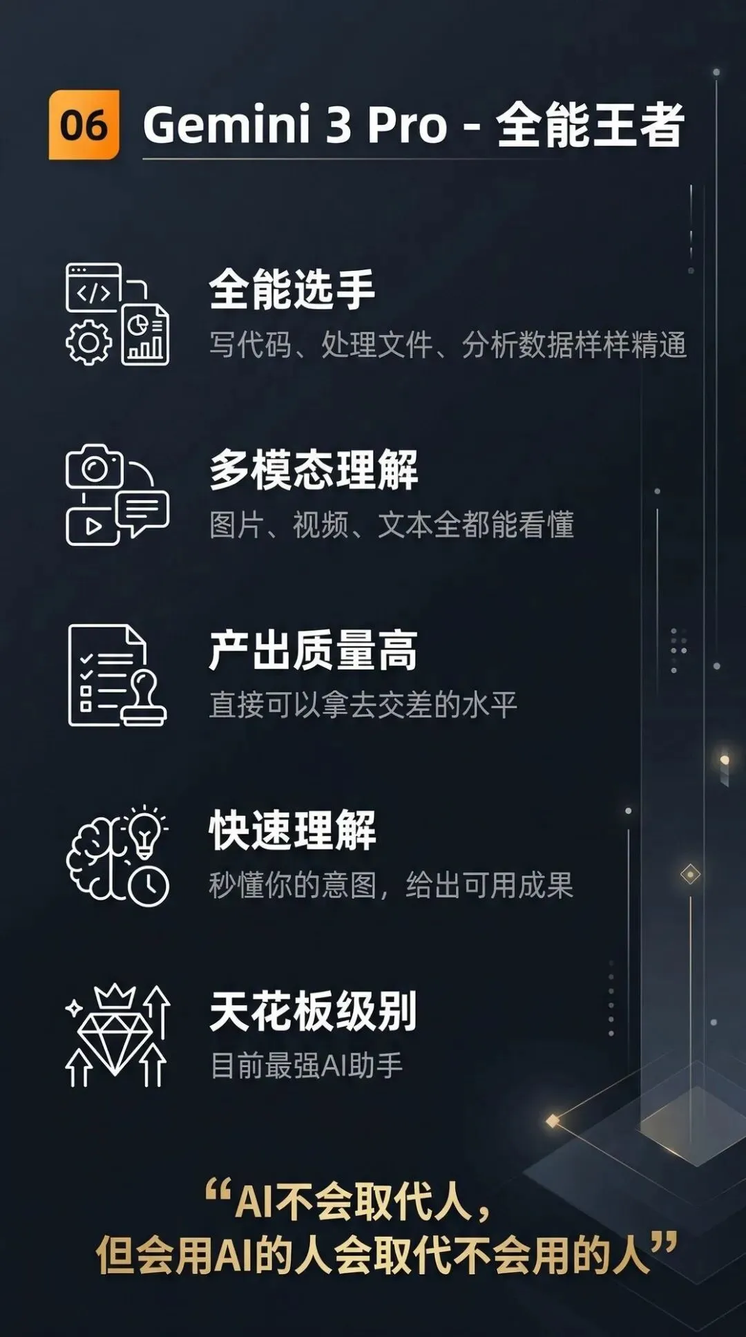 为什么它能排第一?因为其他工具多少都有自己的“专精领域”,而 Gemini 3 Pro 的恐怖之处在于——它什么都能做,而且什么都做得好。