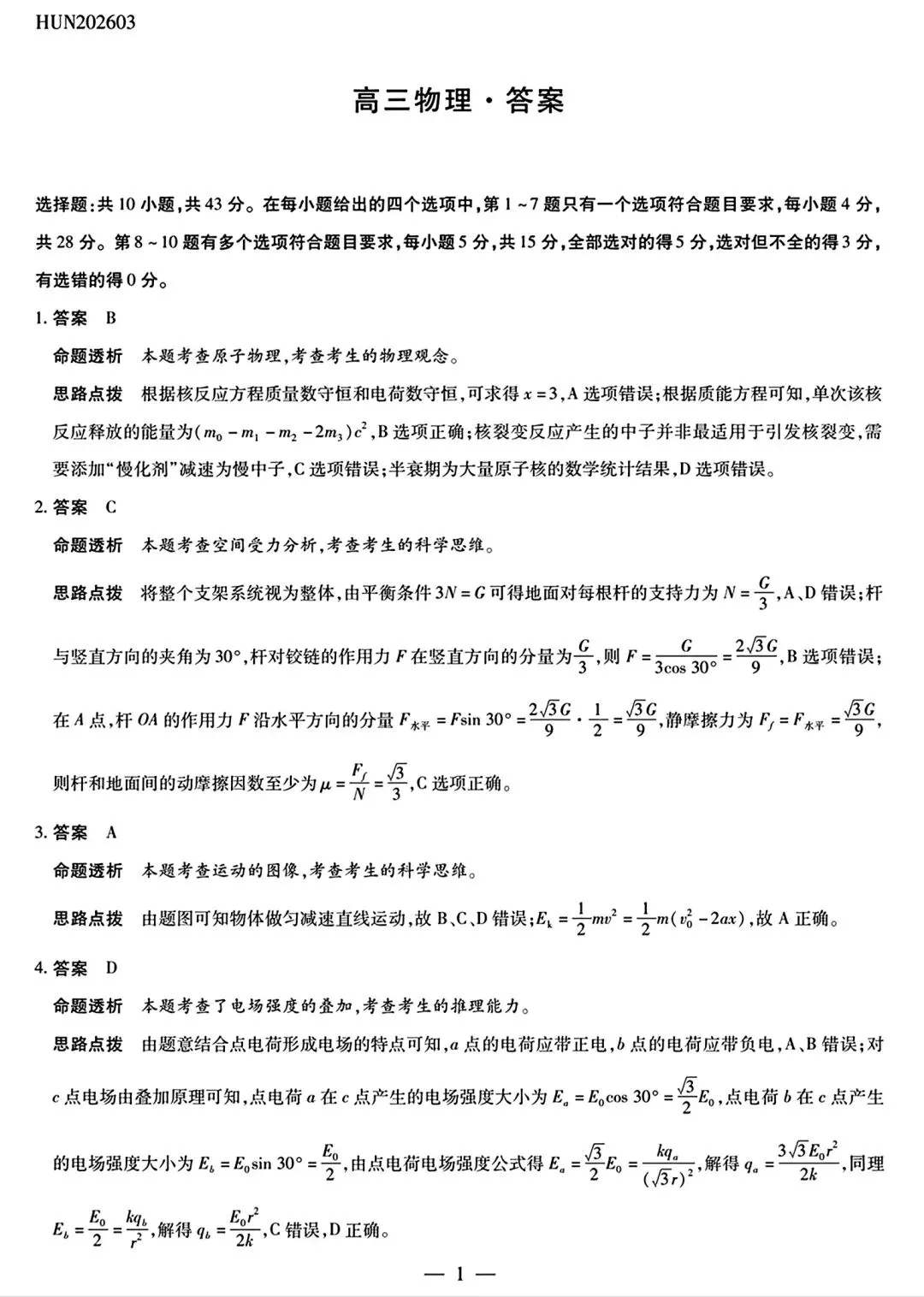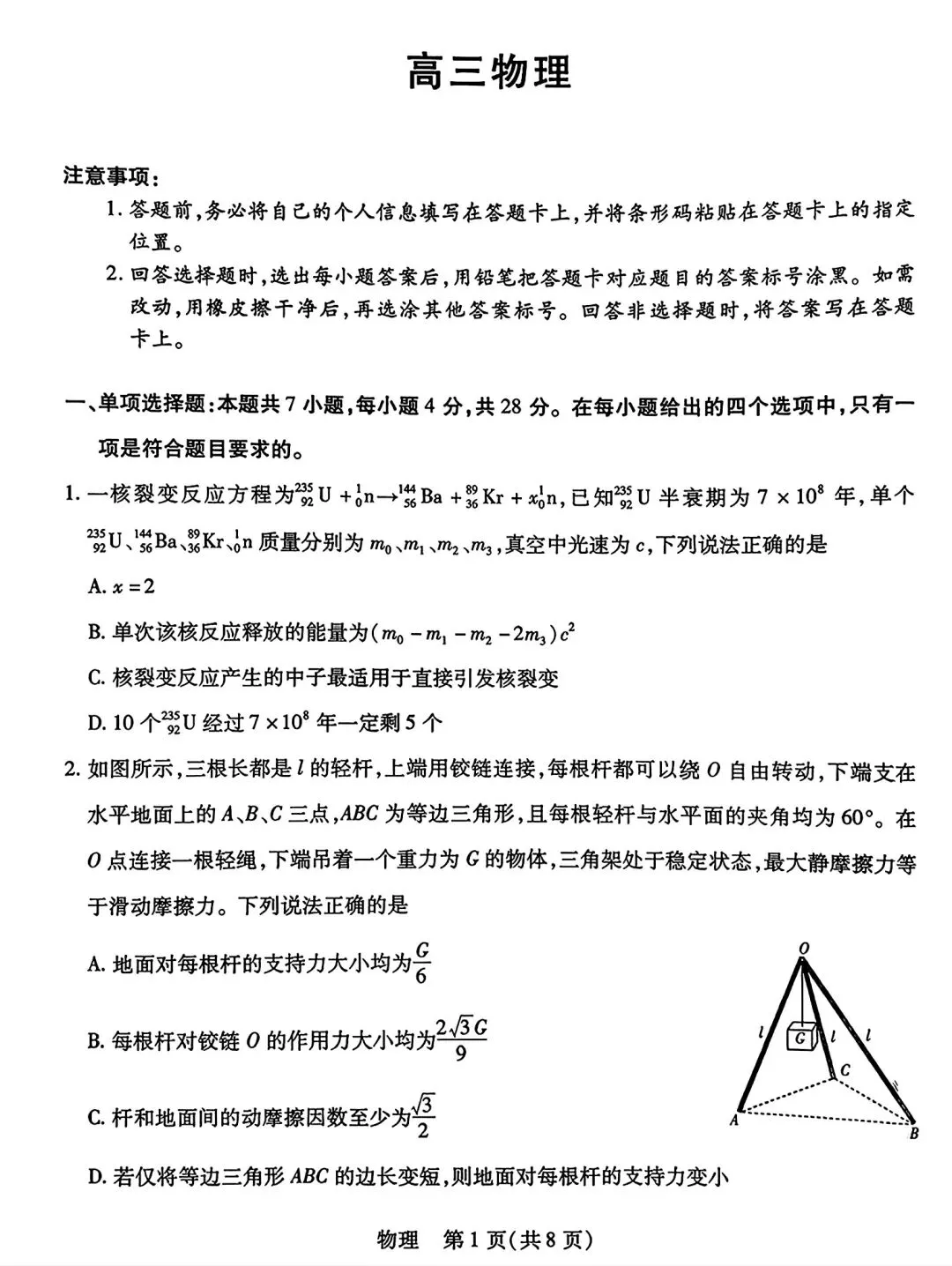 【文末可下载】2026届湖南湘一名校联盟高三下学期二模物理