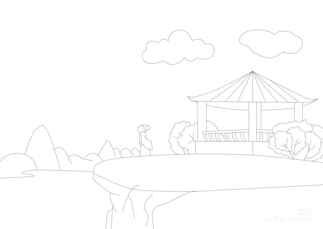 :在画面的一角,可以画上细雨飞扬的效果,或是云朵聚集,微风轻拂的场景。 - 人物