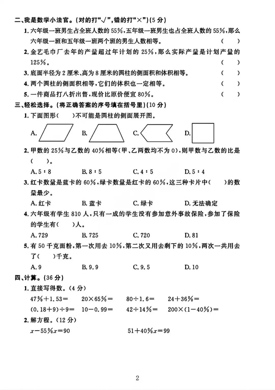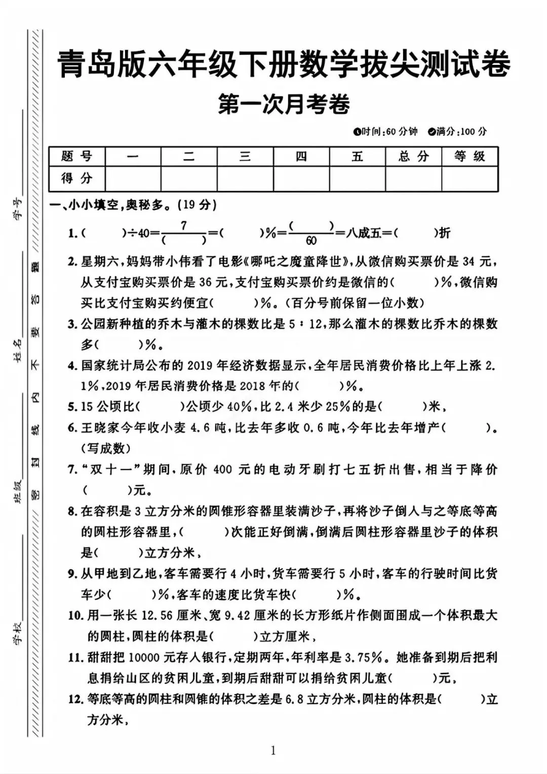我们精心准备了青岛六三版六年级下册数学第一次月考卷,严格依据教材和教学大纲出题,题型丰富,考点全面,精准覆盖近期所学重点知识。
