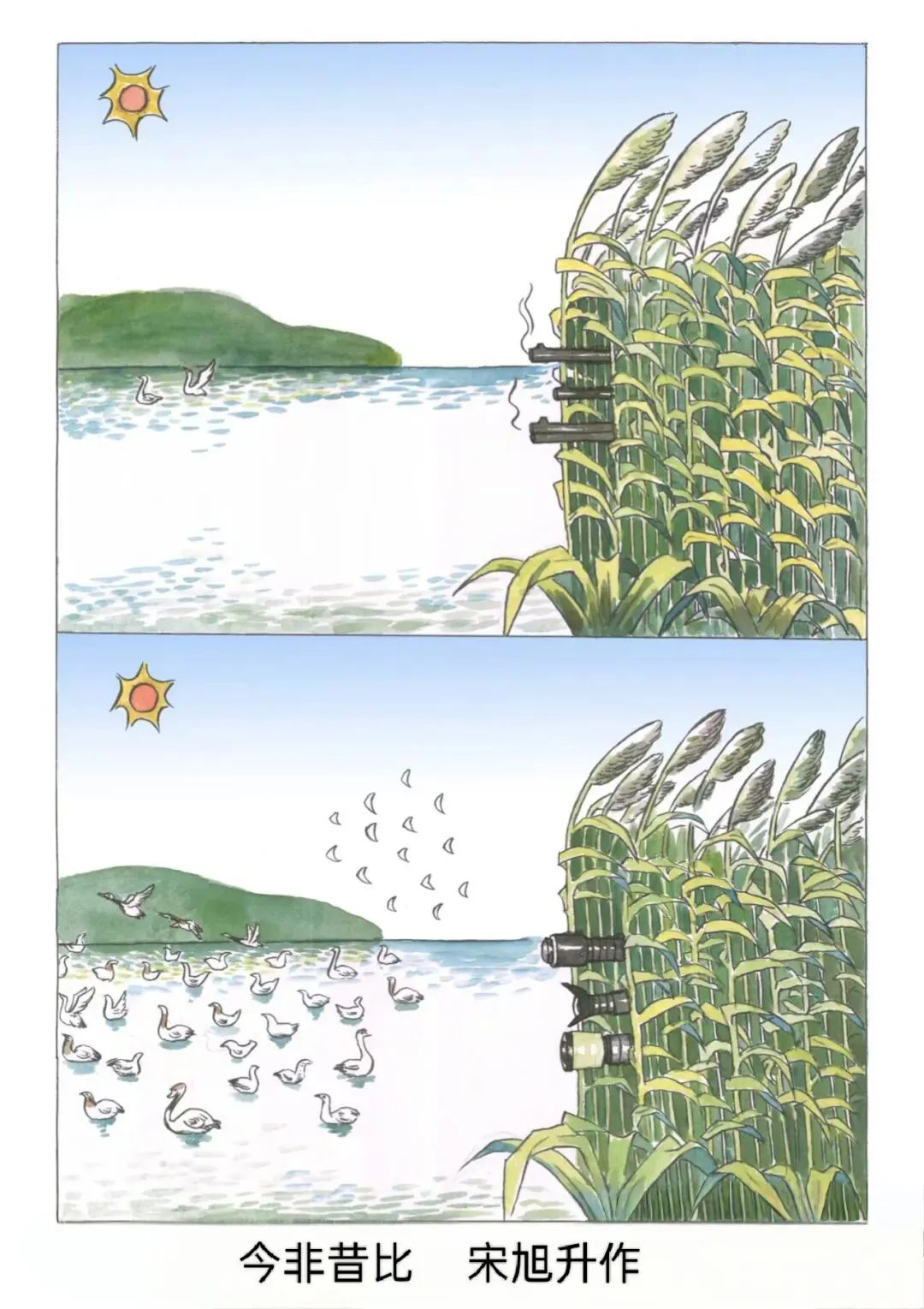 听了他们一席话,我们都表示理解。这时,在我脑子突然闪现出创作灵感,笫二天就完成了漫画《今非昔比》的创作。该作品先后在《讽刺与幽默》、巜工人日报》等多家报刊发表。还入选嘉兴国际漫画双年展并应邀出席开幕式,作品还被嘉兴市