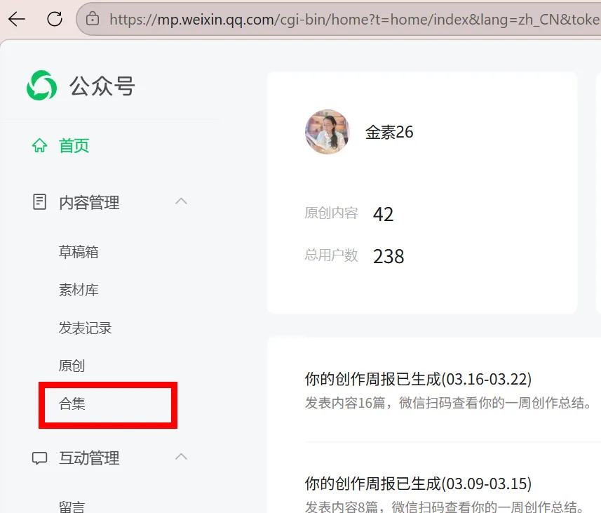 进入合集管理页面